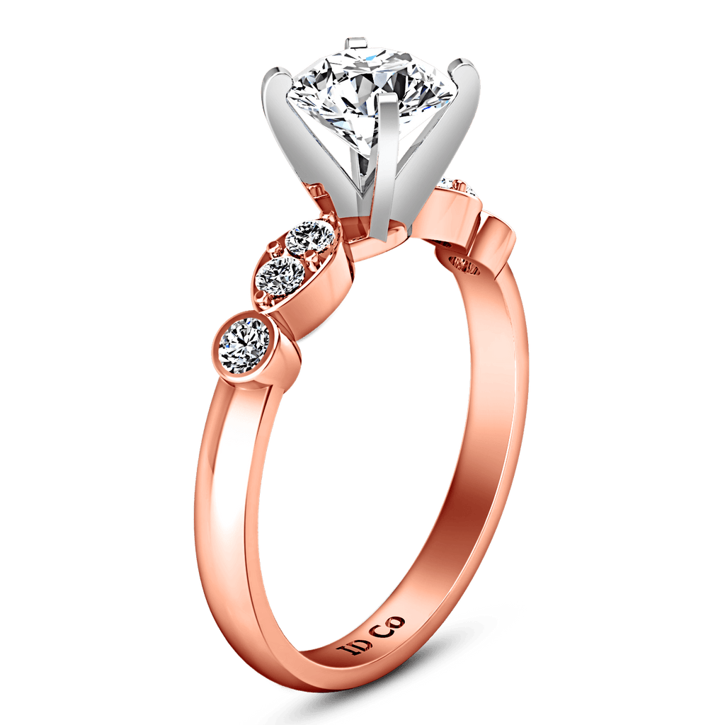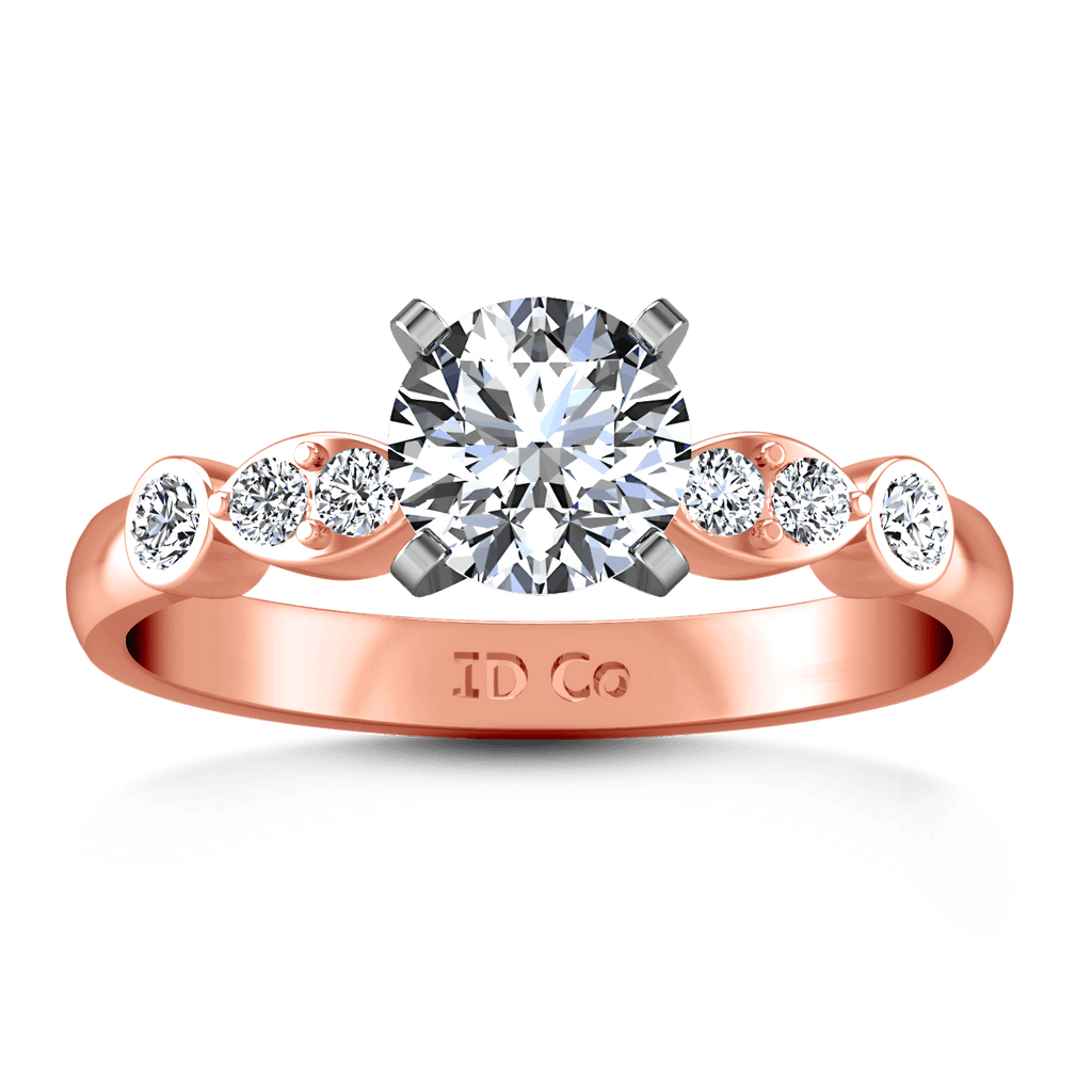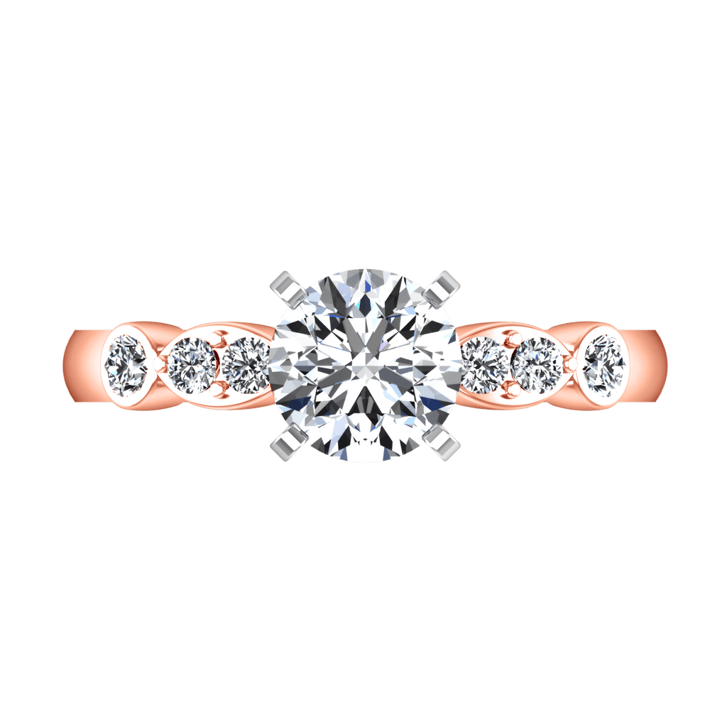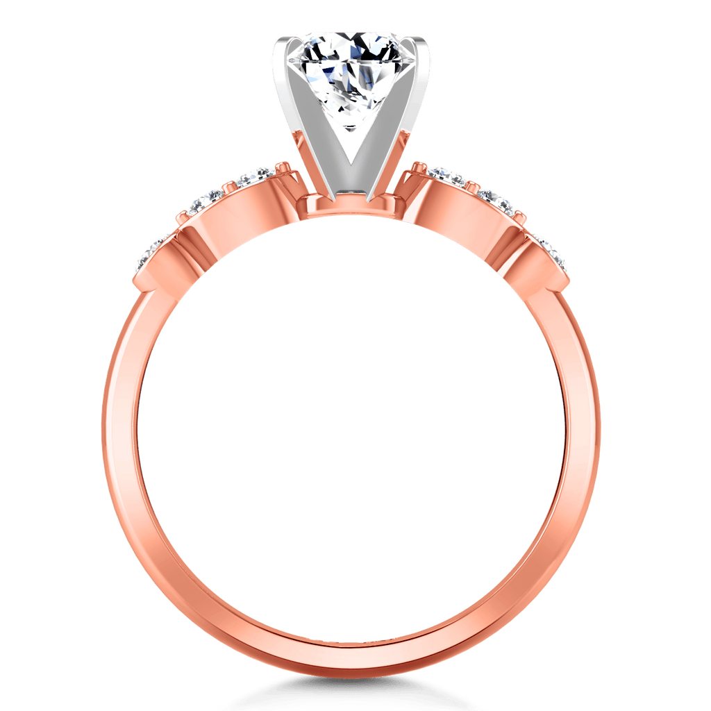 Beautiful setting featuring delicate set round diamonds in marquis and round shape settings. Featured with 0.18 carats of pave diamonds in 14k rose gold with an average width of 2mm . This ring is fully customizable, so pick your center diamond size, color and clarity and we will custom build it for you.