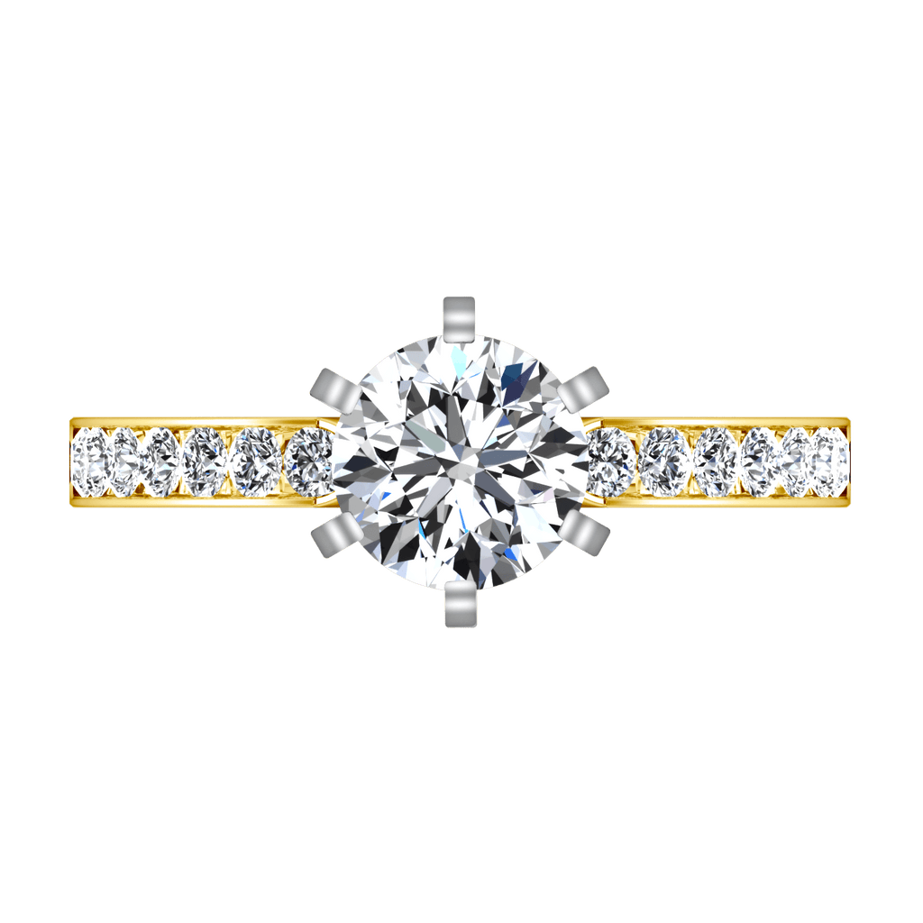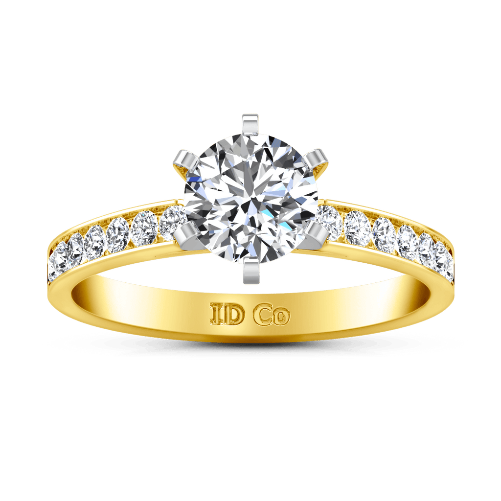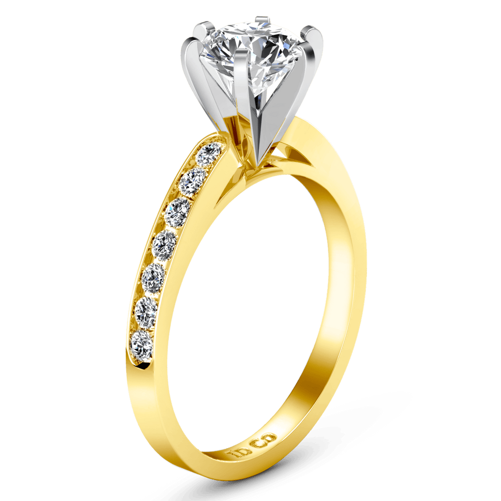 This mounting is accented by two rows of sparkling bead set diamonds framing your alluring and brilliant center stone. Featured with 0.48 carats of pave diamonds in 14k yellow gold with an average width of 2mm . This ring is fully customizable, so pick your center diamond size, color and clarity and we will custom build it for you.