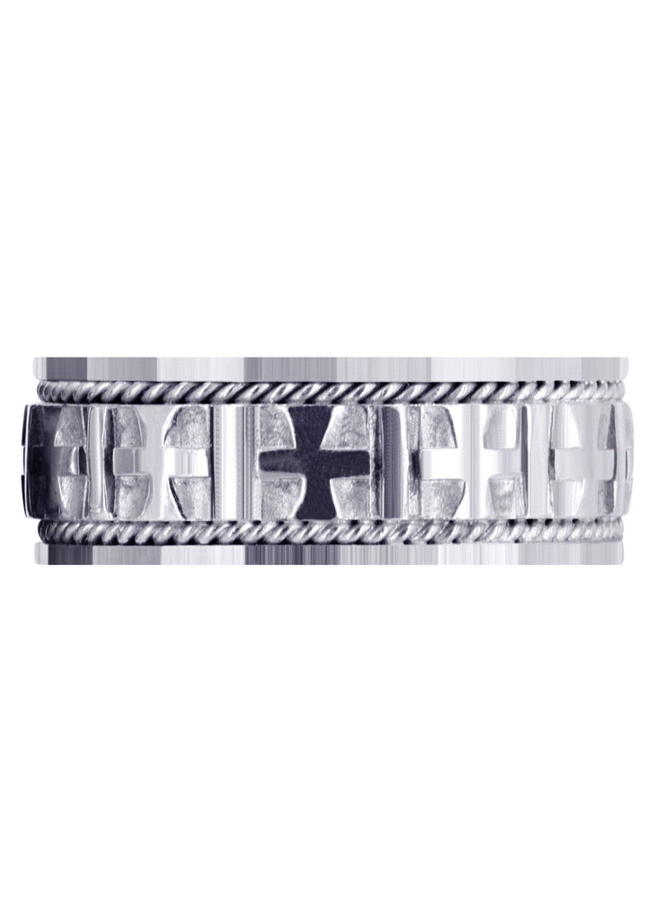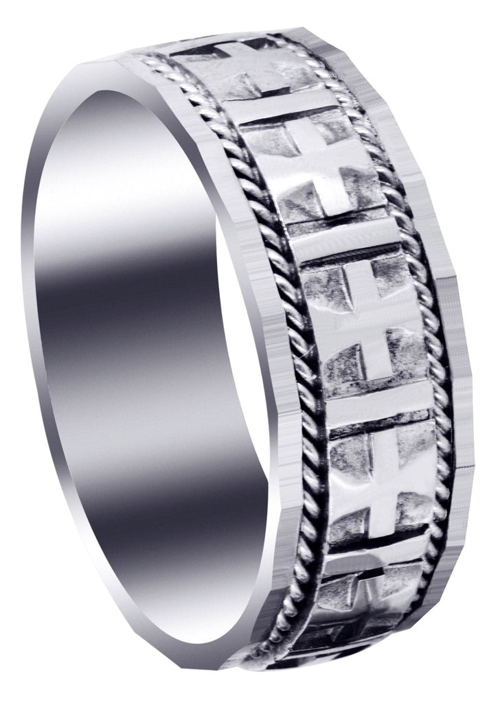 Religious Mens Wedding Band Which Comes In 8 Mm Width,  The Ring Is In High Polish Finish And Can Be Made In Any Metal Of Choice As Selected Above.