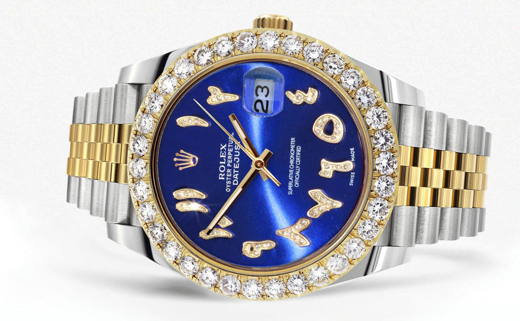 Rolex Datejust 41 Watch | 41 MM | 18K Yellow Gold & Stainless Steel | Custom Blue Arabic Dial | Jubilee Band