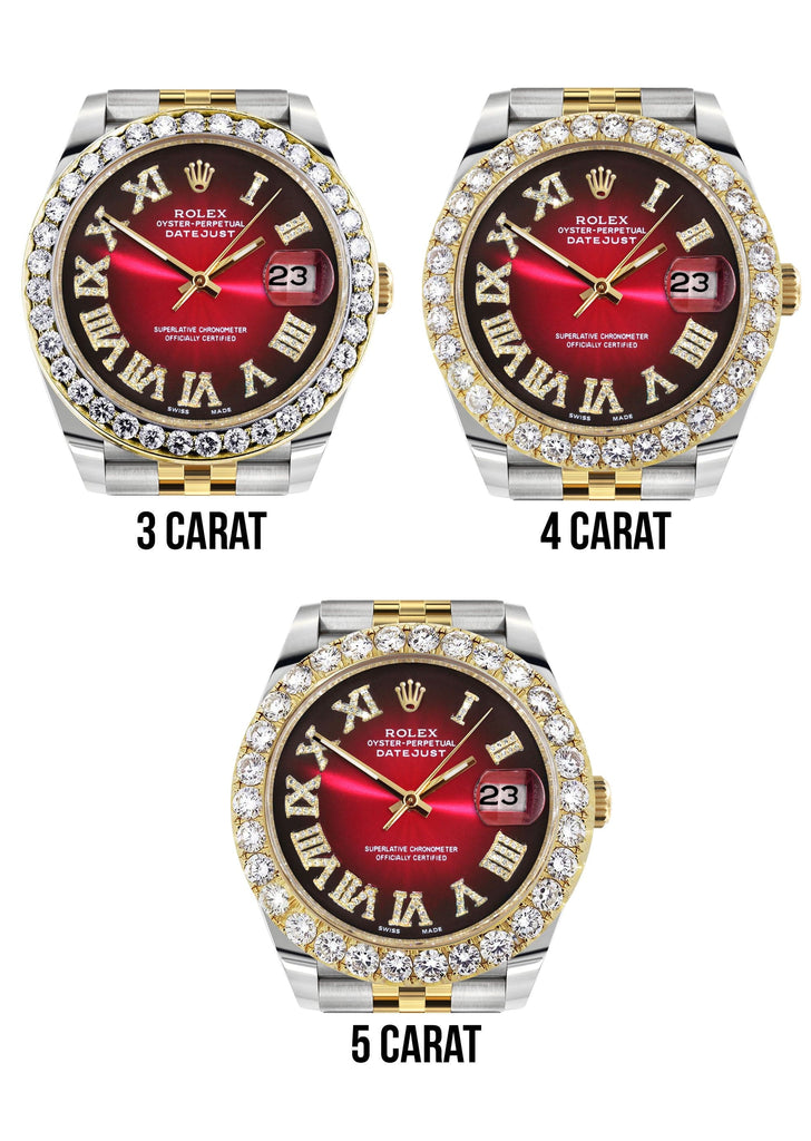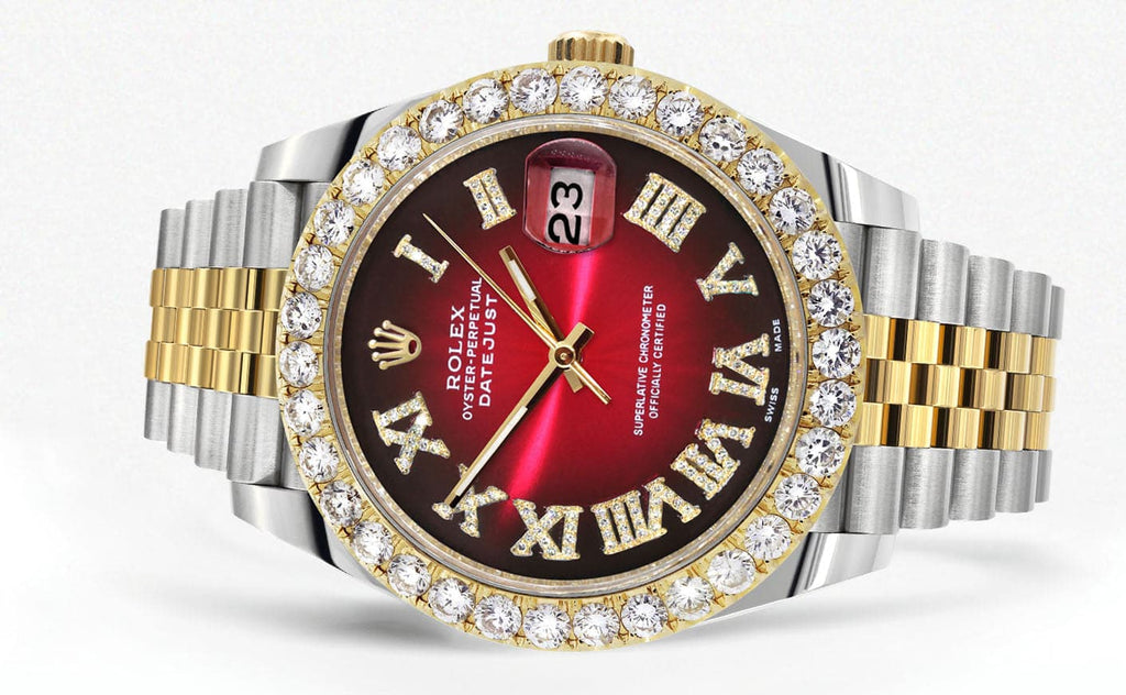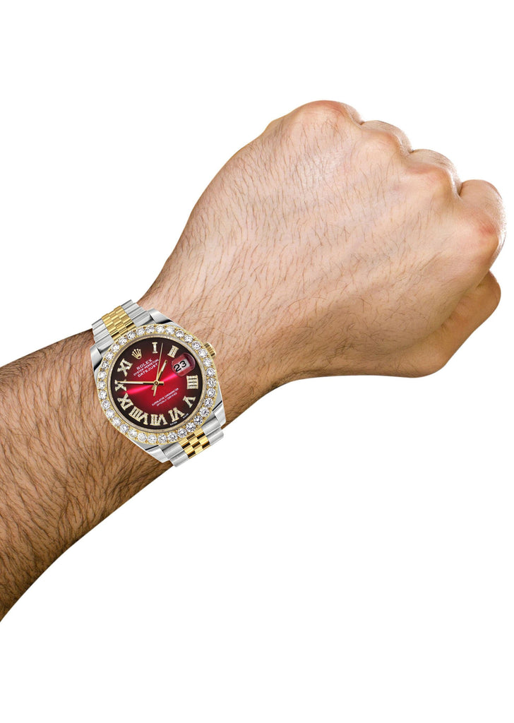 Rolex Datejust 41 Watch | 41 MM | 18K Yellow Gold & Stainless Steel | Custom Red Black Roman Dial | Jubilee Band