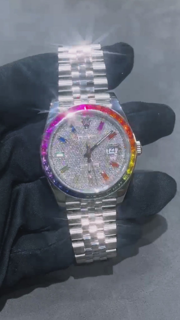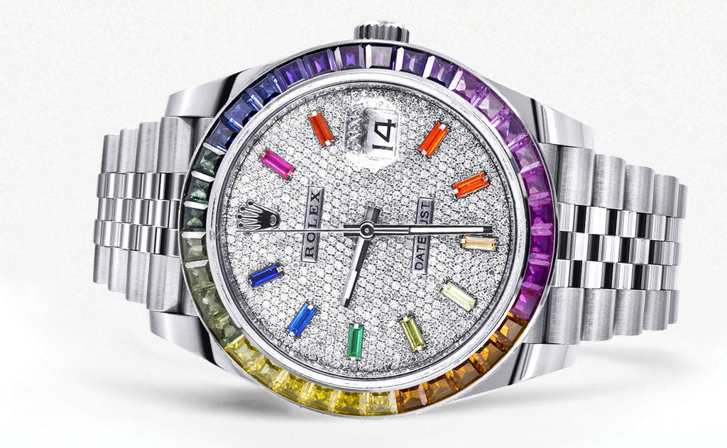 Rolex Datejust 41 Watch | 41 MM | Rainbow Sapphire Bezel | Rainbow Baguettes Diamond Dial | Jubilee Band