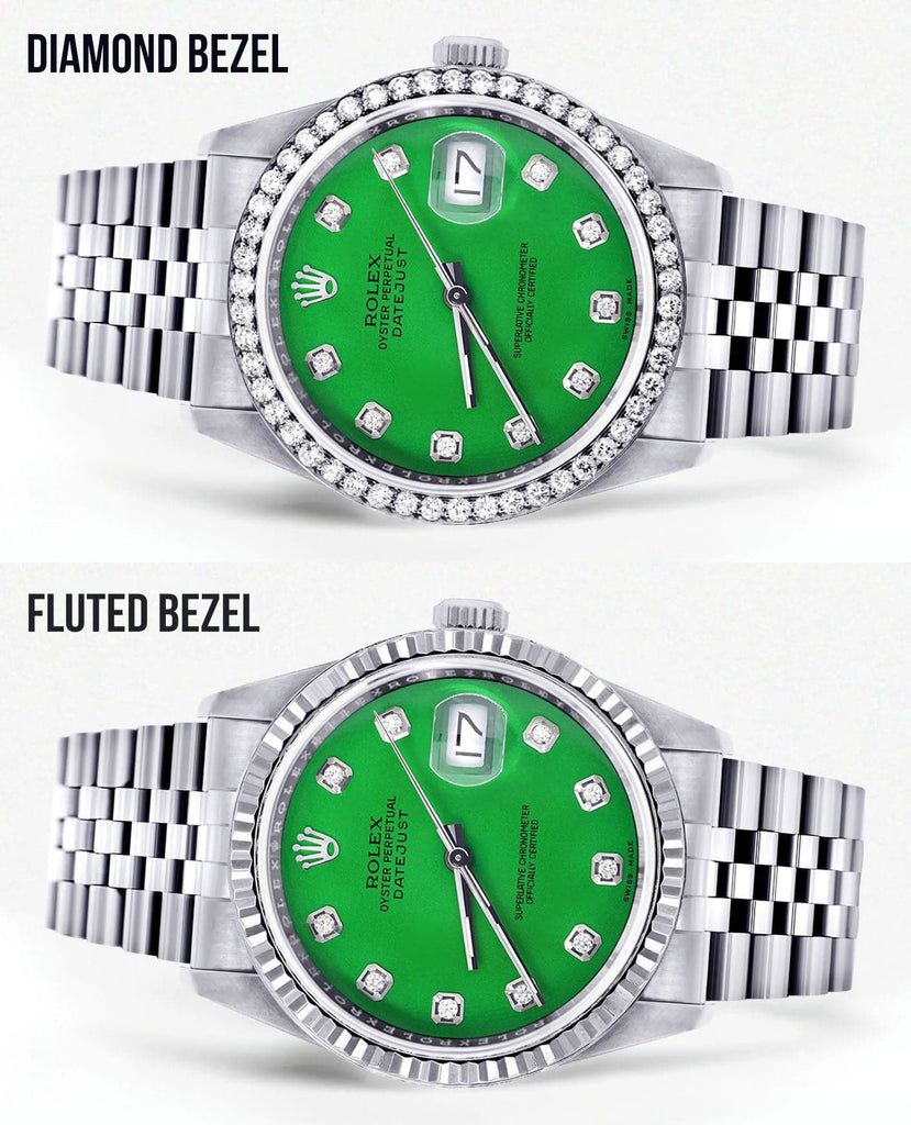 Rolex Datejust 36MM with a Jubilee Band. You can customize the bezel type between Gold Fluted Bezel or Diamond Bezel ranging from 1.00-4.00 carat. Below are more details of the watch.