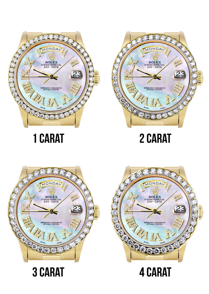 - Dial: Custom Light Mother of Pearl Diamond Roman Numeral Dial