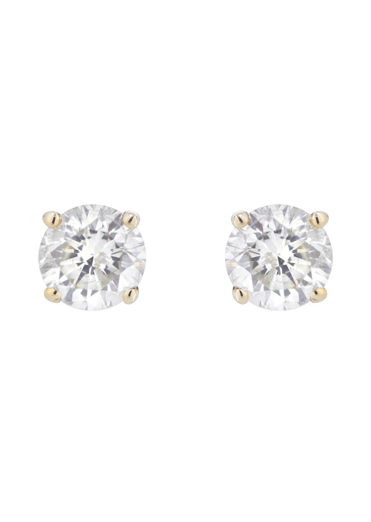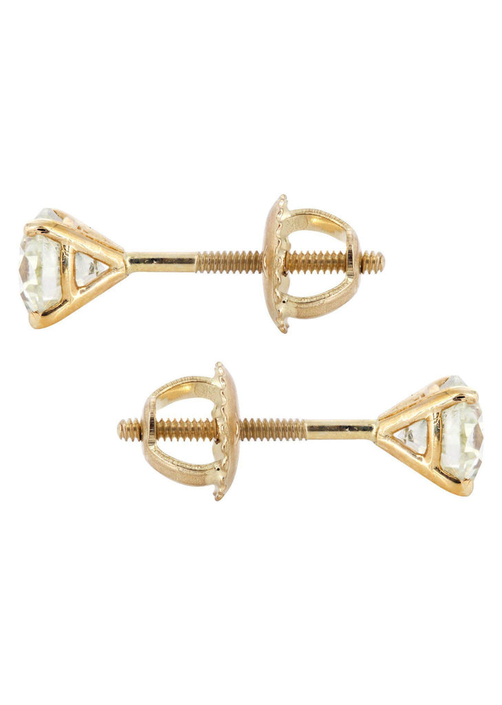 Round  Diamond Stud Earrings In 14K Yellow Gold , 1.6 Carats. The Width Of The Earrings Are 5 Mm And The Length Is 6 Mm.
