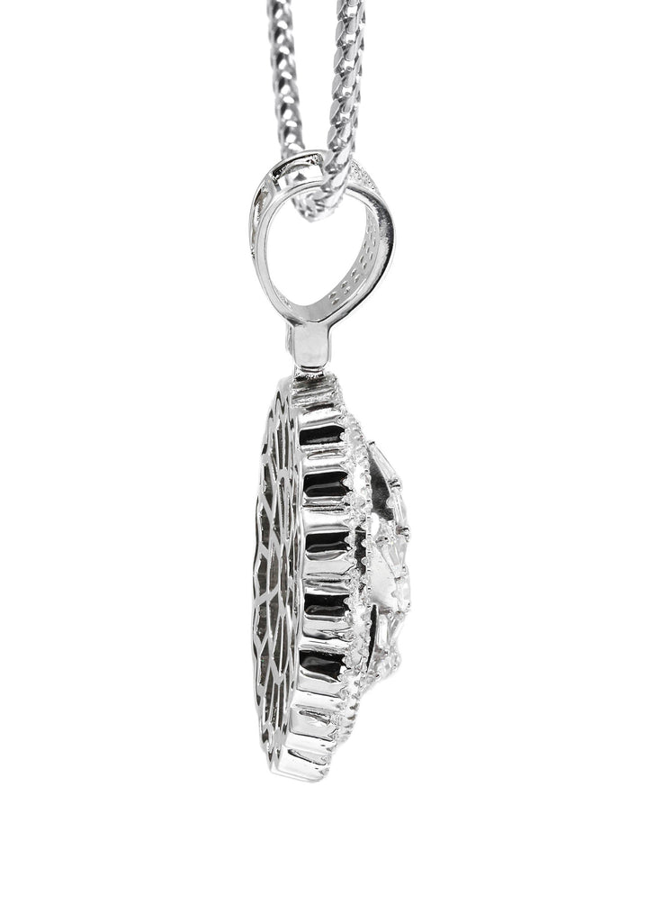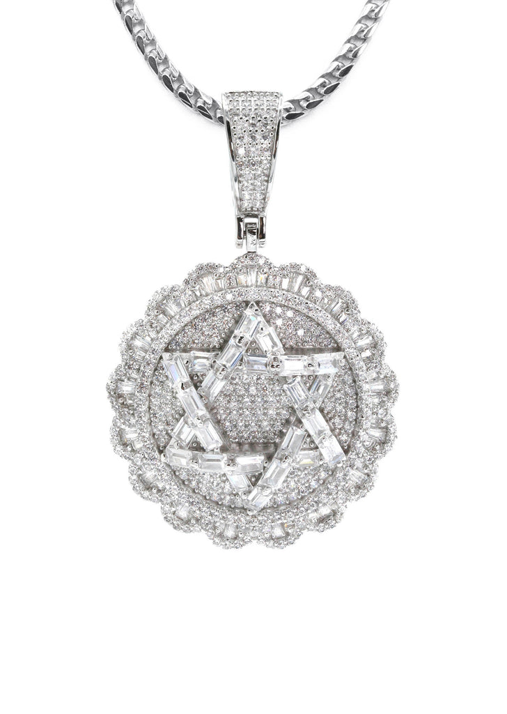 Pure Silver (925) CZ Star of David Pendant with Franco Chain. Rhodium bonded 6 times to provide optimum quality. The necklace is fully customizable, so you may pick your length.