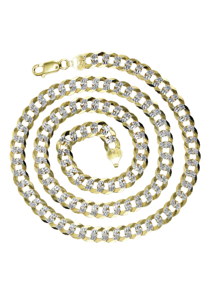 Pure 925 Silver Curb Cuban Diamond Cut Chain which has been gold bonded over 6 times with 14K Gold for premium quality and durability. These chains are fully customizable, so you can pick your length and width above. Once you select your length and width, you can see the adjusted gram weight below the price.