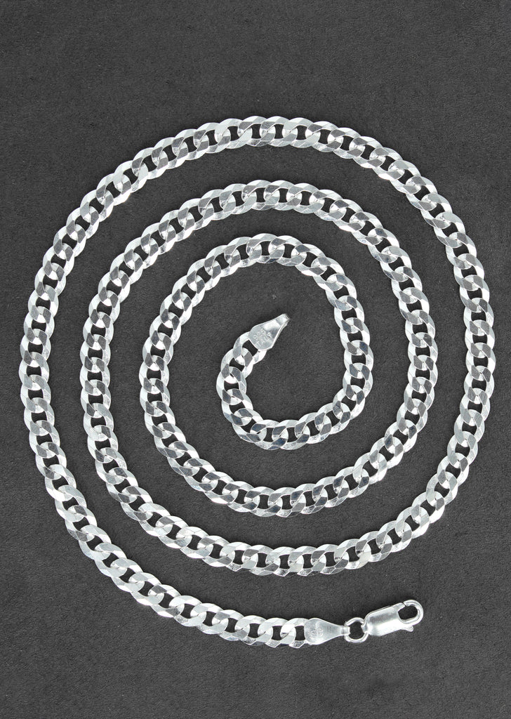 Pure Silver (925) Curb Chain in 5 mm with Rhodium bonded 6 times to provide optimum quality and durability. These chains are fully customizable, so you can pick your length above. Once you select your length, you can see the adjusted gram weight below the price. The chain is also water proof which will provide long lasting wear under any condition.