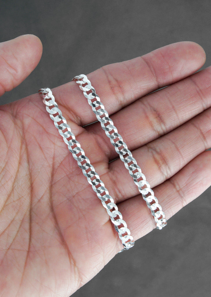 Silver Chain - Mens White Chain / Curb Chain / 5 MM
