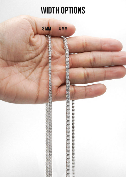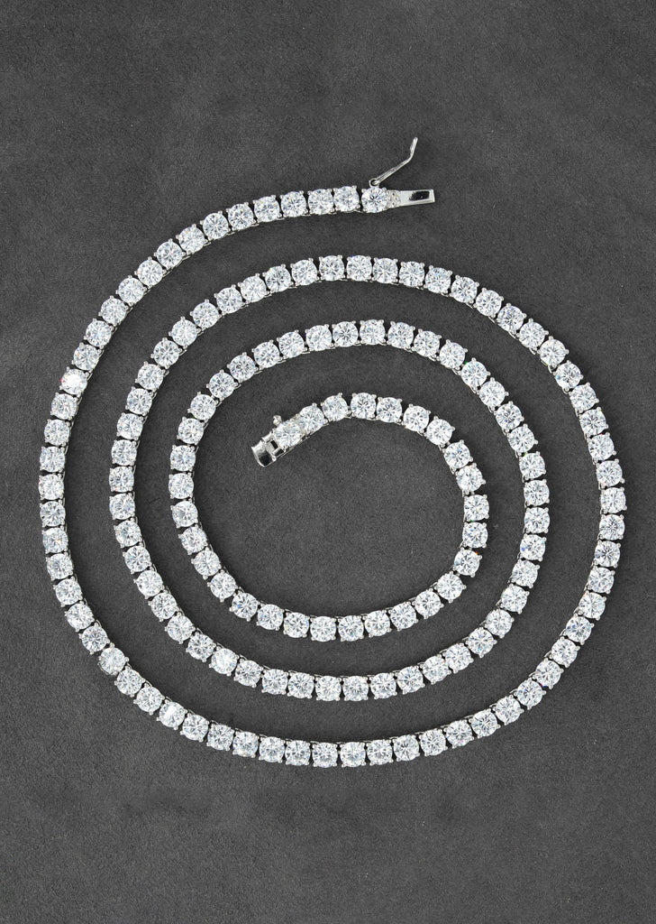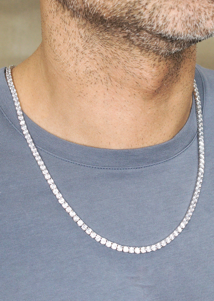 Silver Chain - Mens White Tennis Chain / Necklace - 4 MM