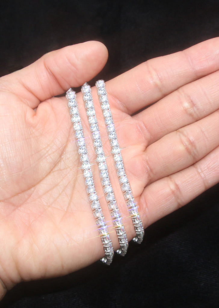 Pure 925 Silver Tennis Chain in 4mm which has been gold bonded over 6 times with Rhodium for premium quality and durability. These chains are fully customizable, so you can pick your length above. Once you select your length, you can see the adjusted gram weight below the price. The chain is also water proof which will provide long lasting wear under any condition.