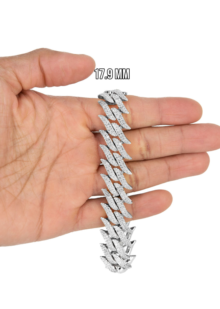 Pure 925 Silver Iced Out Spiked Barbed Wire Bracelet which has been gold bonded over 6 times with 14K Gold for premium quality and durability. These bracelets are fully customizable, so you can pick your length and width above. Once you select your length and width, you can see the adjusted gram weight below the price.