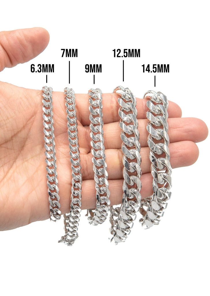 Pure Silver (925) White Miami Cuban Bracelet with Rhodium bonded 6 times to provide optimum quality. These bracelets are fully customizable, so you can pick your length and width above. Once you selected your length and width, you can see the adjusted gram weight below the price.