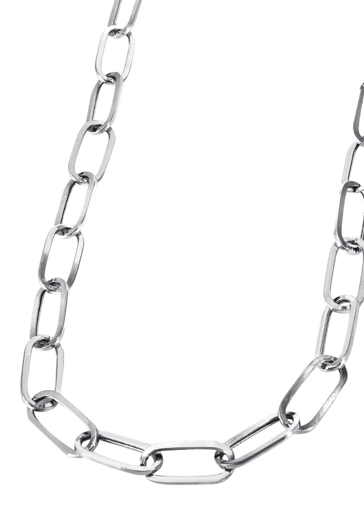 Solid Paper Clip Chain | 10K or 14K White Gold. These chains are fully customizable, so you can pick your gold purity, length and width above. Once you selected your purity, length and width, you can see the adjusted gram weight below the price.