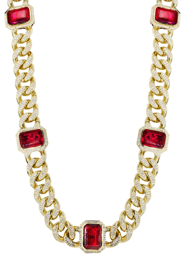 Solid Ruby and Cz Miami Cuban Link Chain 10K Yellow Gold. This chain is fully customizable, so you can pick your length and width above. Once you selected your length and width, you can see the adjusted gram weight above the price.