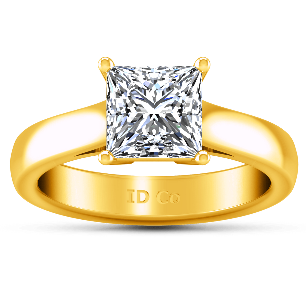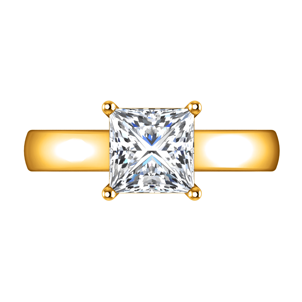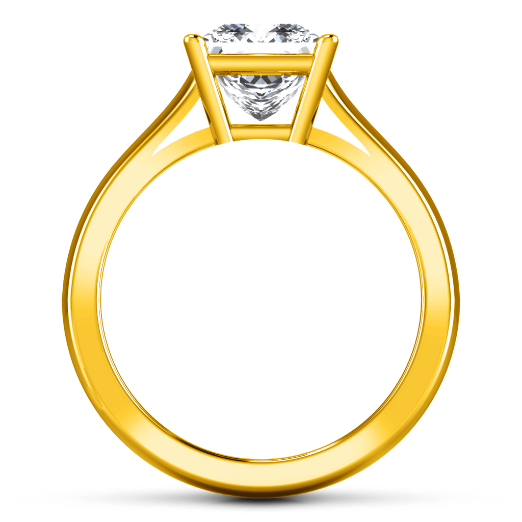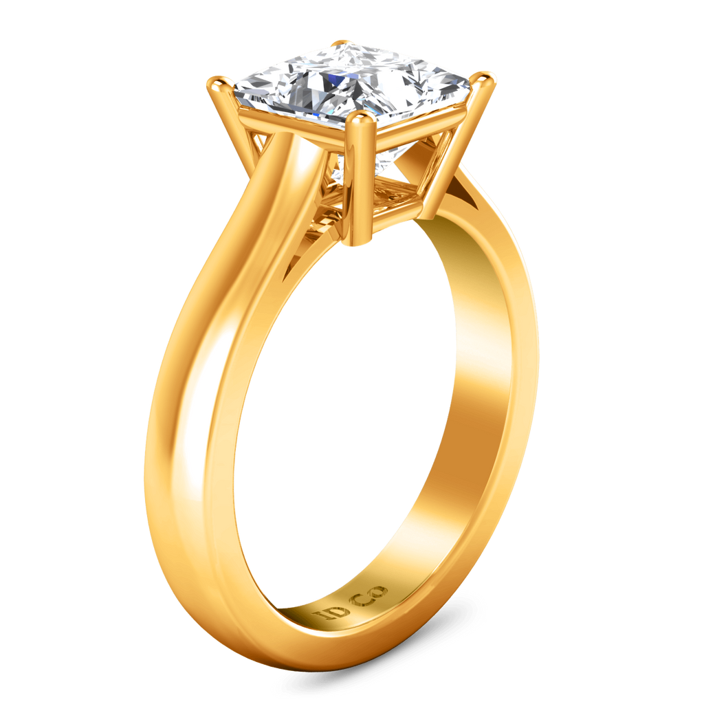 Contemporary prong Solitaire ring which will accentuate your princess cut diamond from every angle. Featured in 14k yellow gold with an average width of 2.5mm . This ring is fully customizable, so pick your center diamond size, color and clarity and we will custom build it for you.