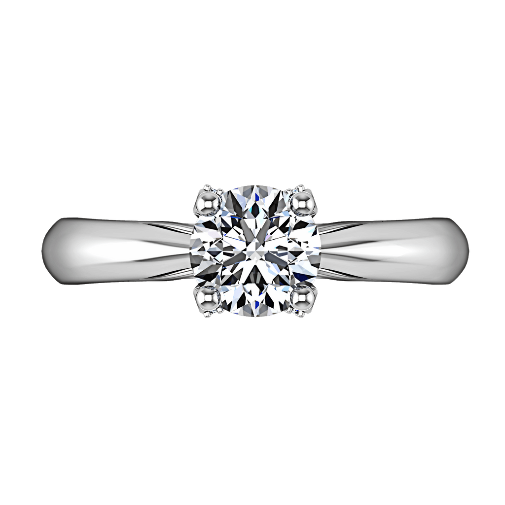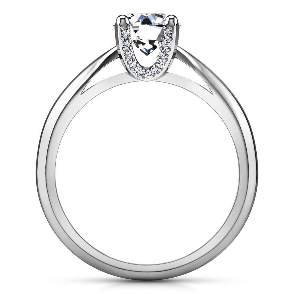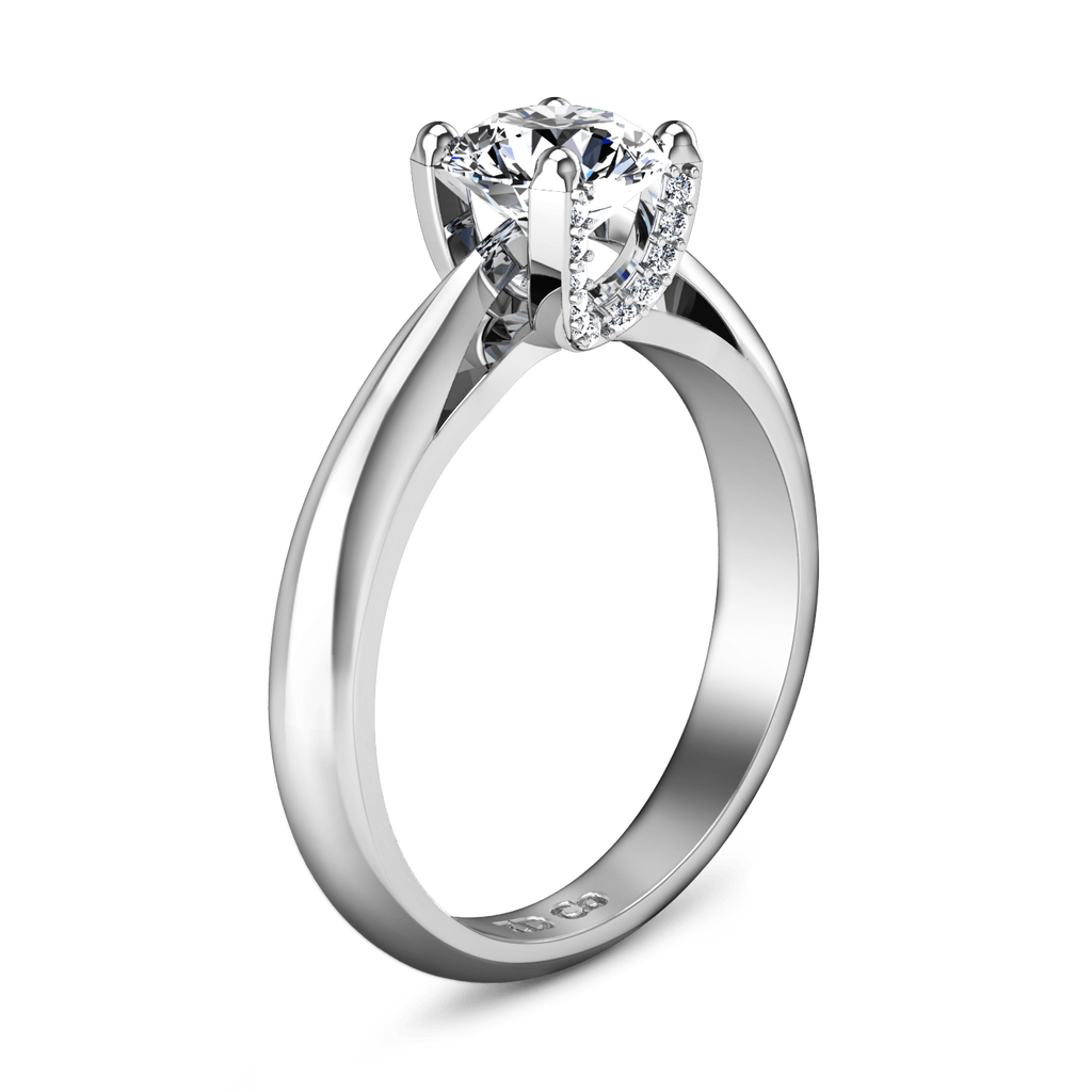This ring is romantic and modern with it's clean lines and delicately set accent diamonds embracing your center stone. Featured in 14k white gold with an average width of 2.5mm . This ring is fully customizable, so pick your center diamond size, color and clarity and we will custom build it for you.