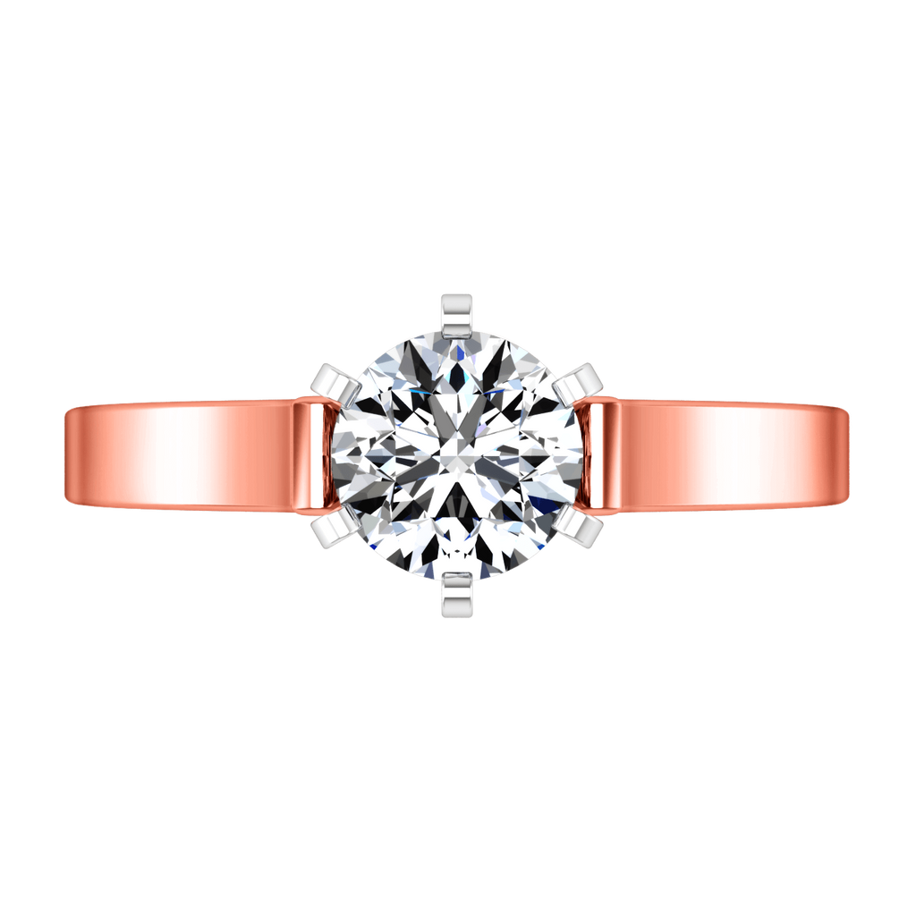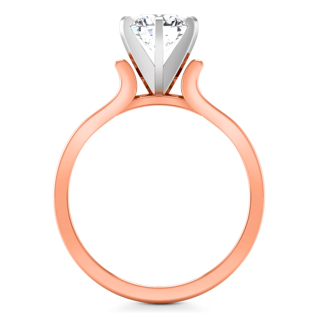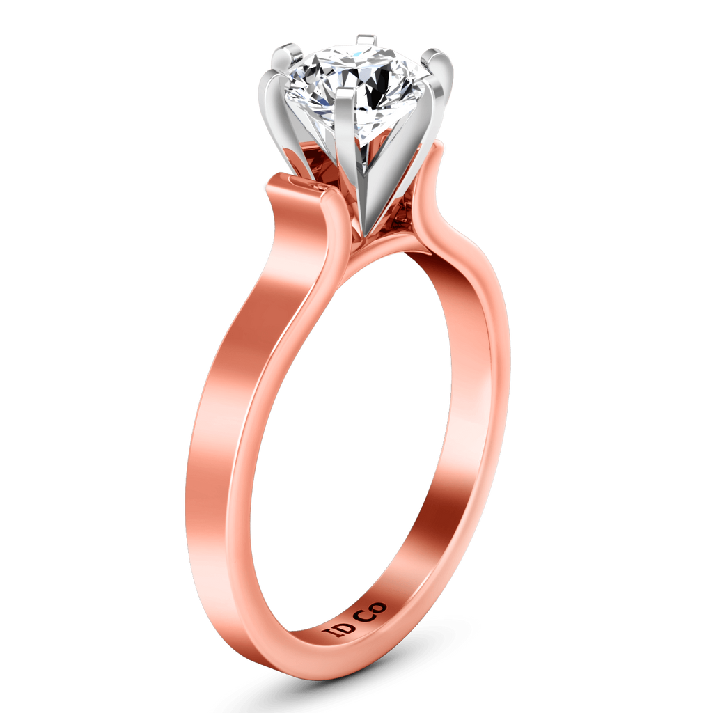 This unique setting is contemporary and romantic featuring a gentle curved shoulder that will accentuate your center stone. Featured in 14k rose gold with an average width of 2mm . This ring is fully customizable, so pick your center diamond size, color and clarity and we will custom build it for you.