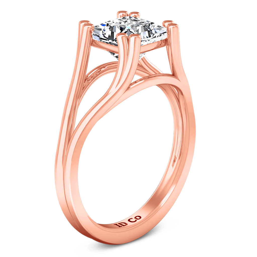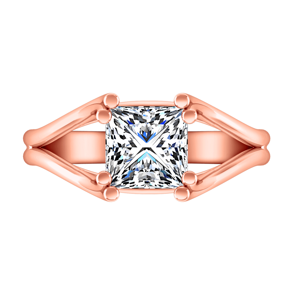 A sleek and modern double prong diamond engagement ring that creates a romantic aura. Featured in 14k rose gold with an average width of 2mm . This ring is fully customizable, so pick your center diamond size, color and clarity and we will custom build it for you.