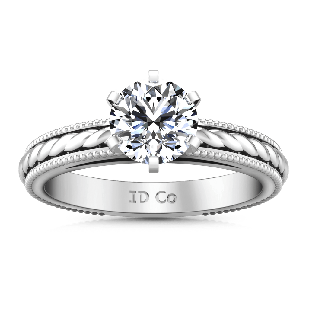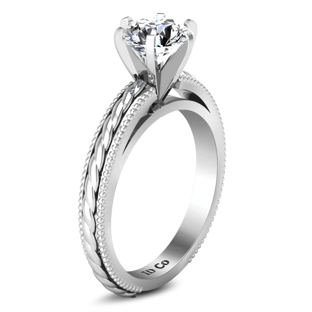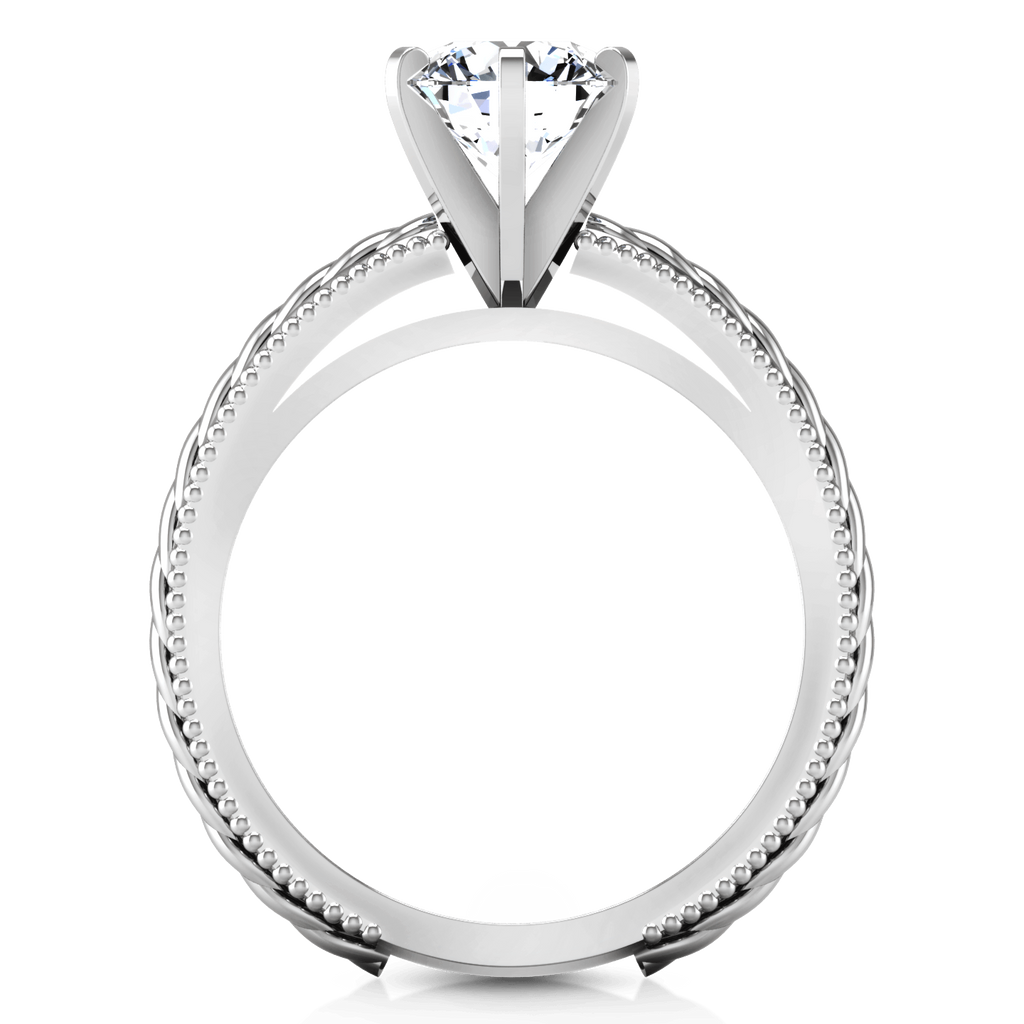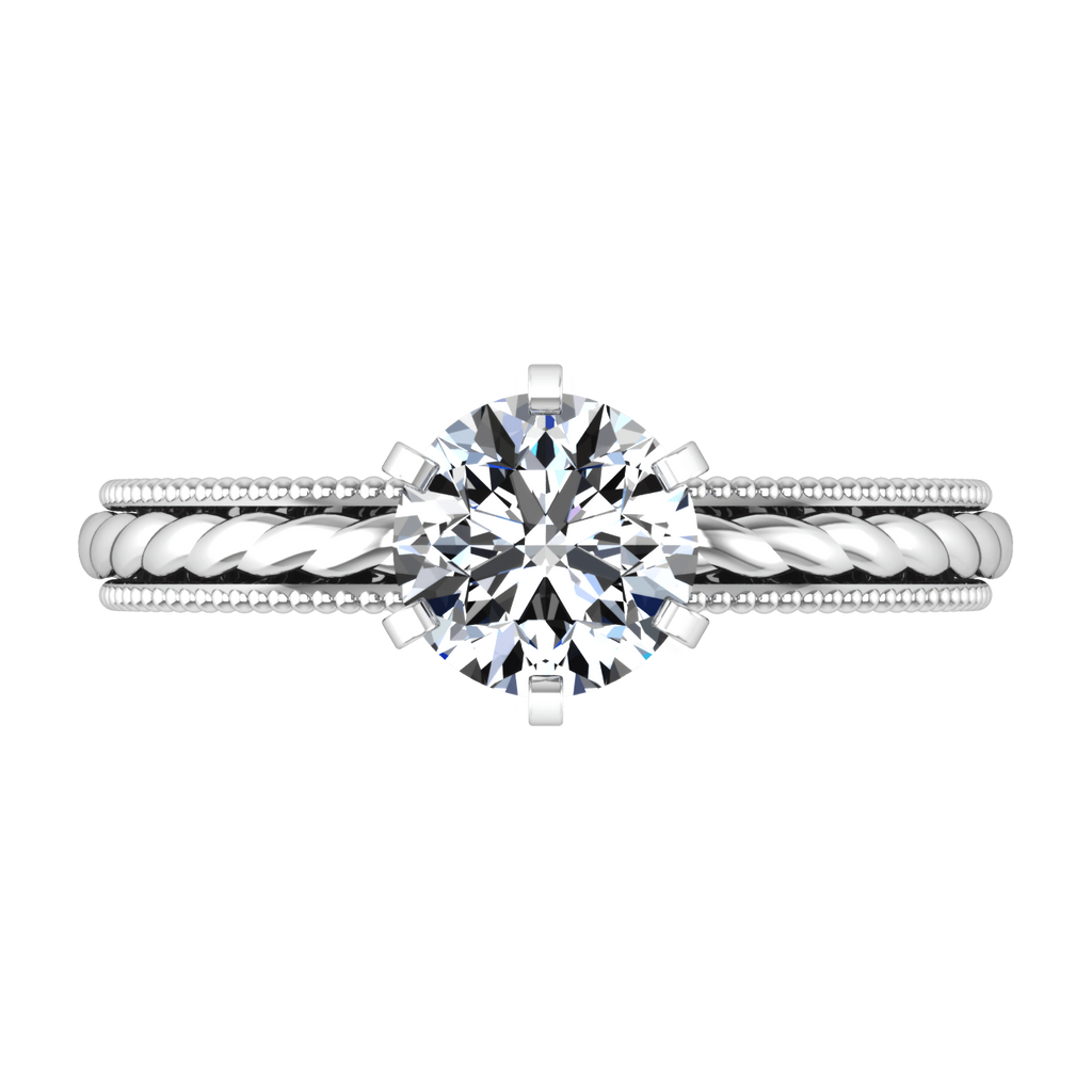 Solitaire engagement ring with a intricate look, embeded with miligrain. Featured in 14k white gold with an average width of 3mm . This ring is fully customizable, so pick your center diamond size, color and clarity and we will custom build it for you.