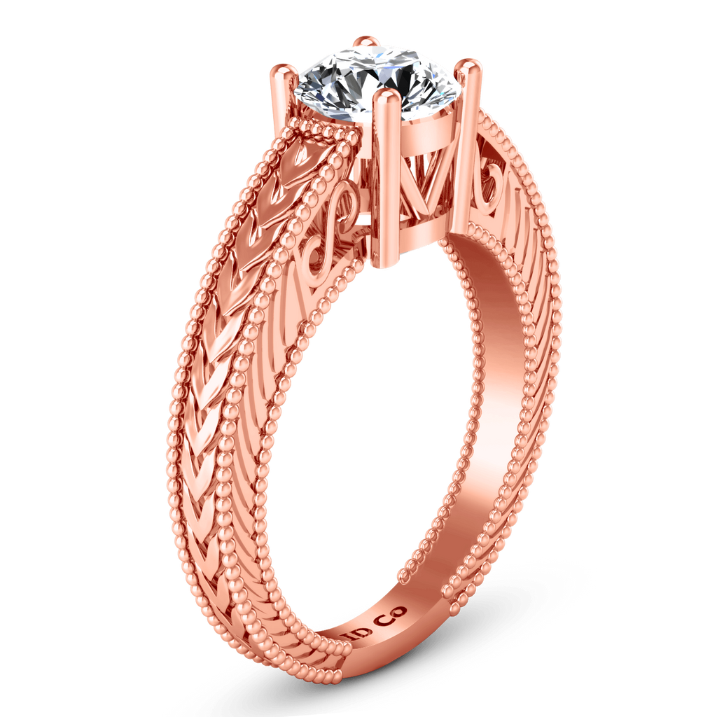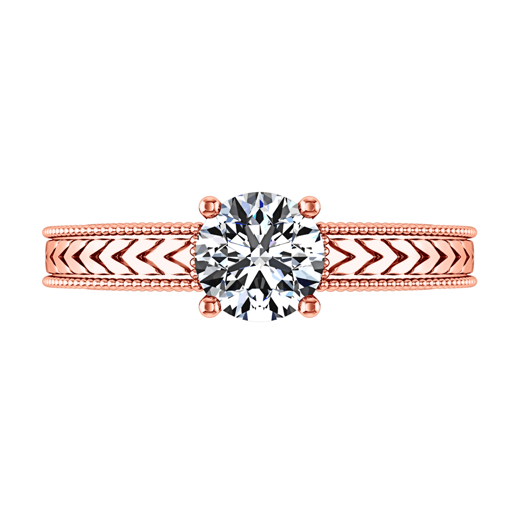 This elaborately embellished mounting is the perfect for framing your gorgeous center stone. Featured in 14k rose gold with an average width of 2.5mm .