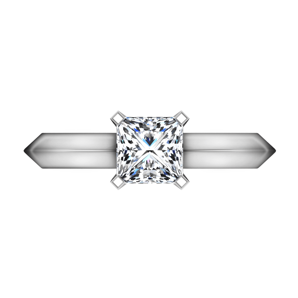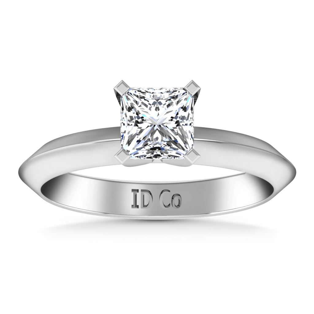 Solitaire Princess Cut Diamond Engagement Ring Knife Edge 14K White Gold