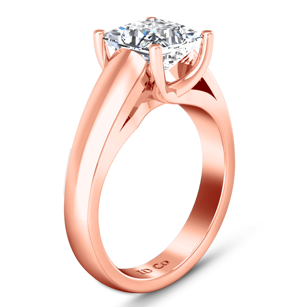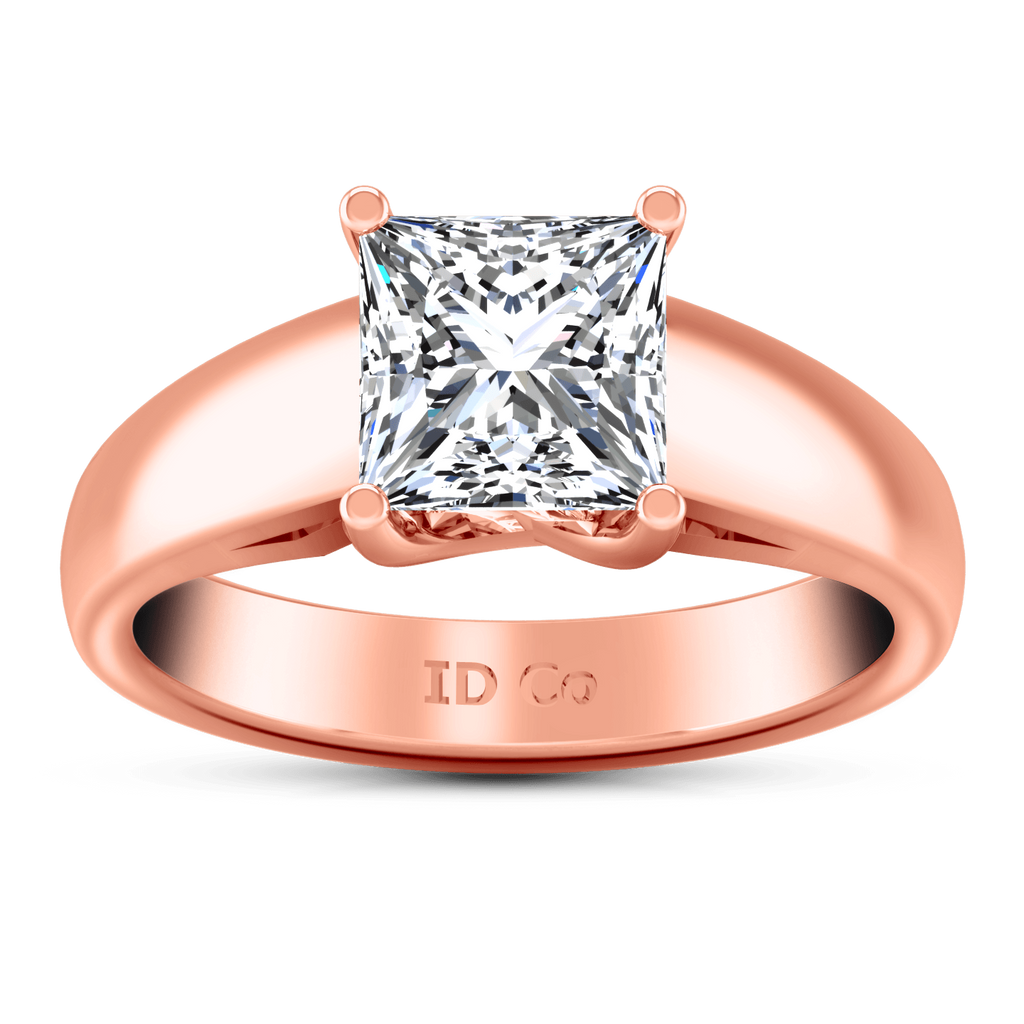 Beautifully set your gorgeous princess cut diamond in an elegant Lattice style mounting. Featured in 14k rose gold with an average width of 3mm . This ring is fully customizable, so pick your center diamond size, color and clarity and we will custom build it for you.