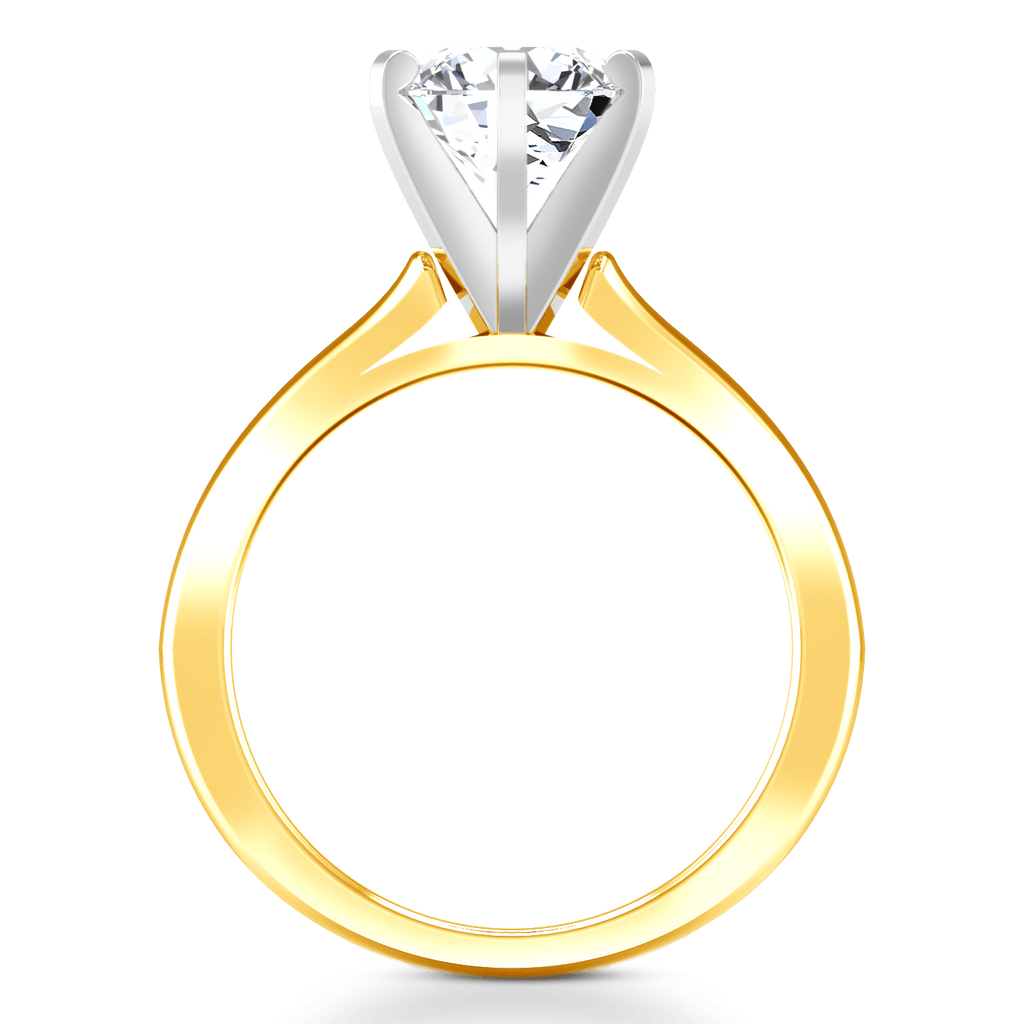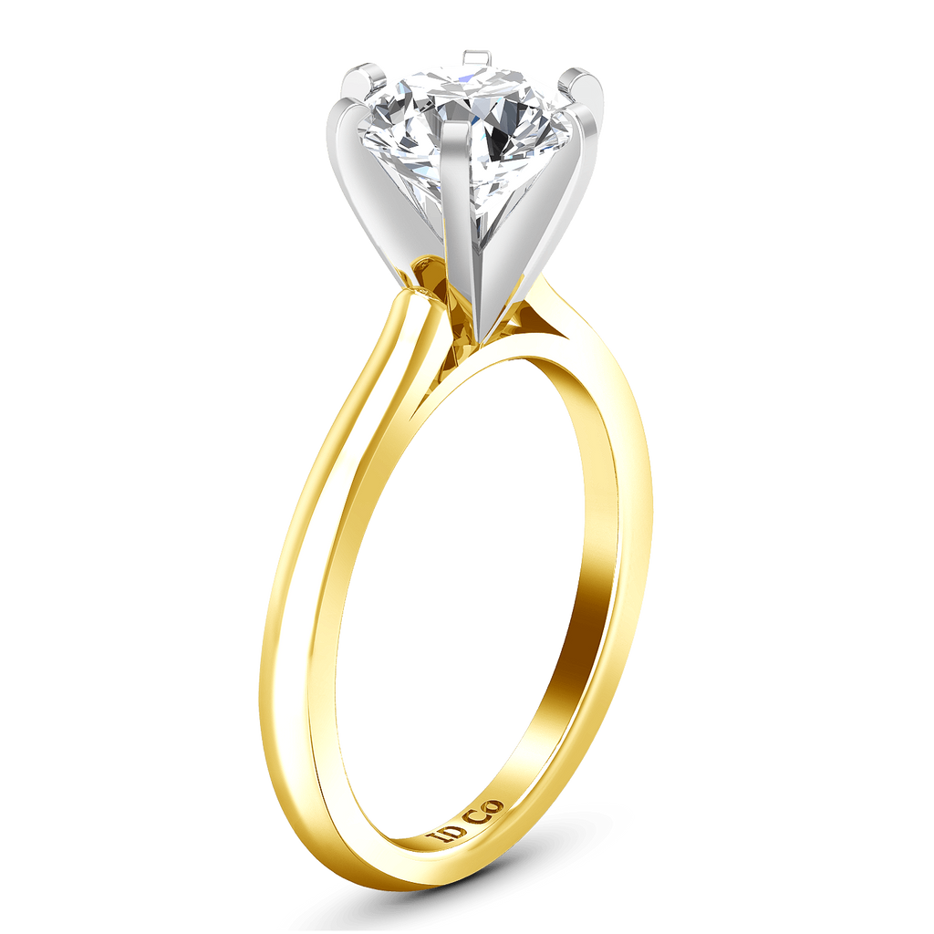 This elegant setting features petite arches that cradle your center stone. Featured in 14k yellow gold with an average width of 2mm .