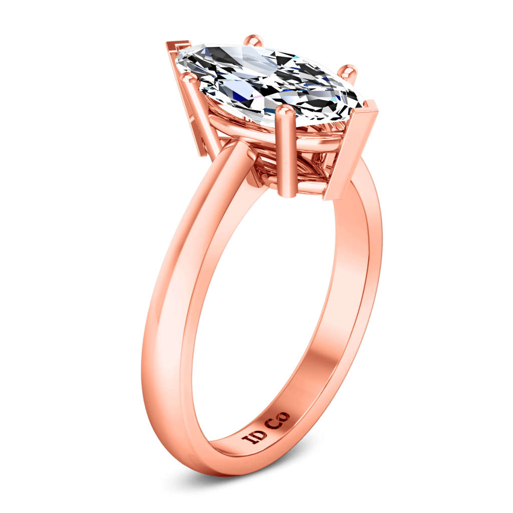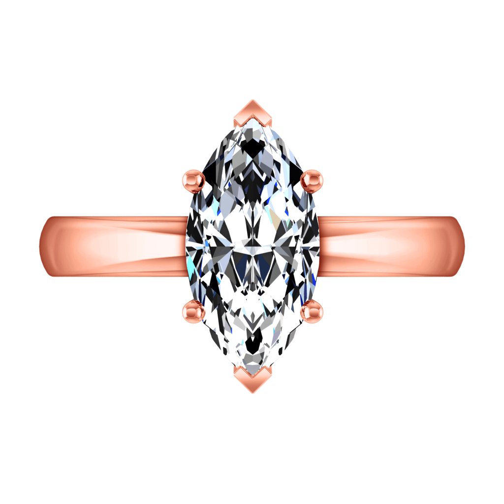 Solitaire engagement ring for the marquise shape diamond with rounded edges to create comfort for everyday wear. Featured in 14k rose gold with an average width of 2mm . This ring is fully customizable, so pick your center diamond size, color and clarity and we will custom build it for you.