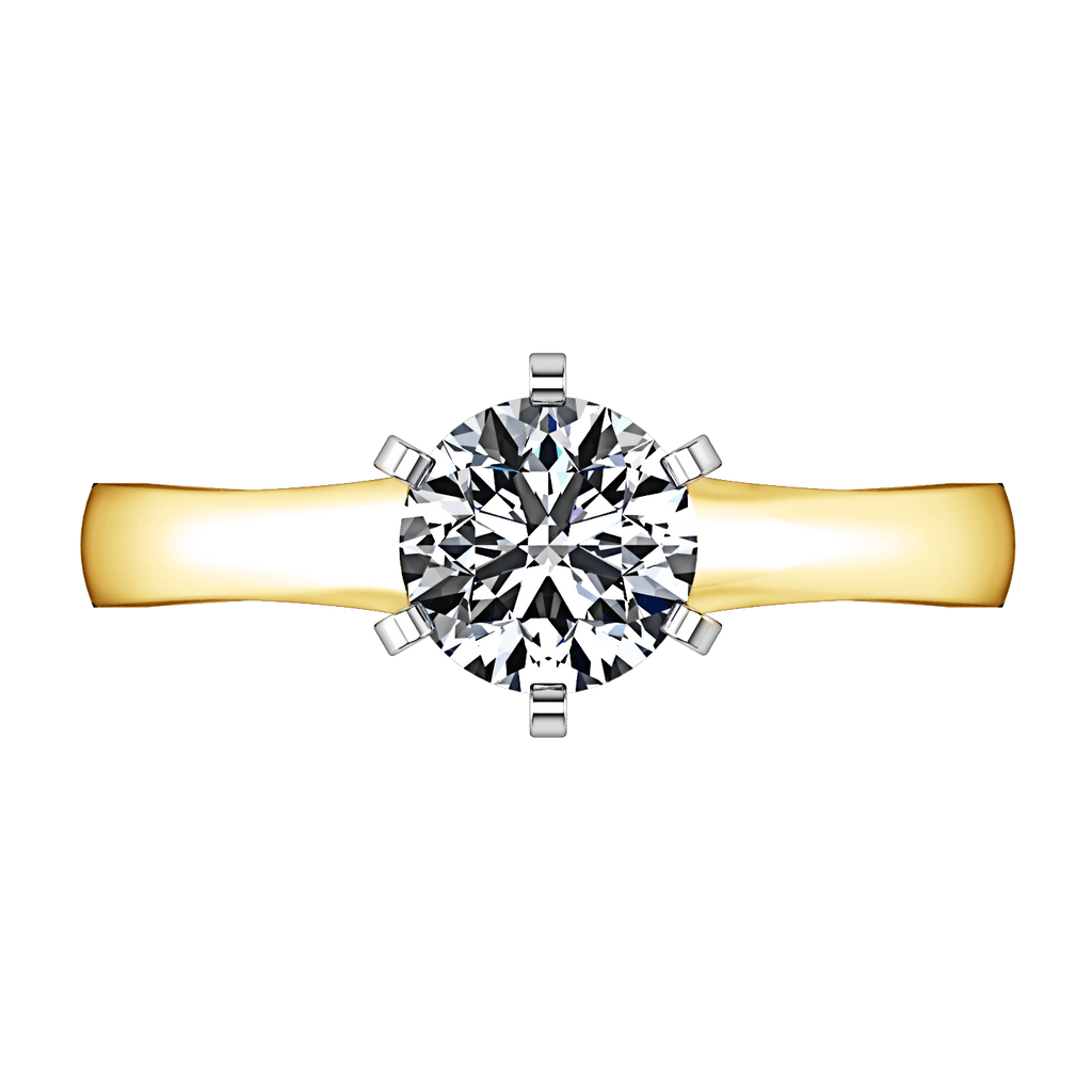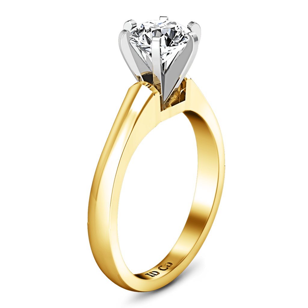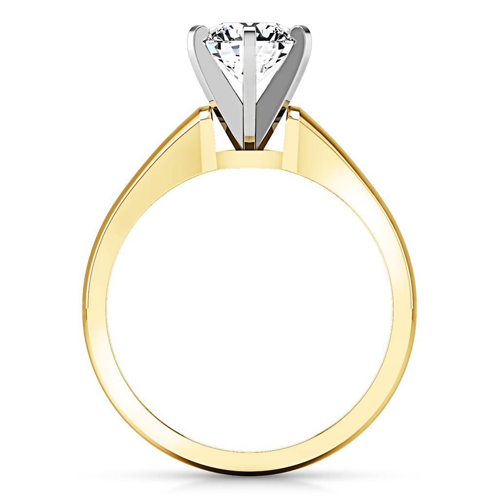 This modern setting is a clean and classic style that will look stunning with any shaped stone. Featured in 14k yellow gold with an average width of 2mm . This ring is fully customizable, so pick your center diamond size, color and clarity and we will custom build it for you.