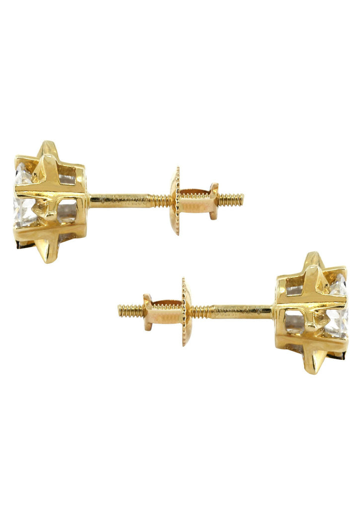 Stud Diamond Earrings In 14K Yellow Gold With Approximately 0.59 Carats Of Diamonds. Earrings Come With An Average Length Of 8 Mm And 8 Mm In Width.