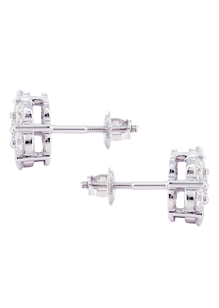 Stud Diamond Earrings Illusion Set In 14K White Gold With Approximately 0.89 Carats Of Diamonds. Earrings Come With An Average Length Of 7 Mm And 7 Mm In Width.