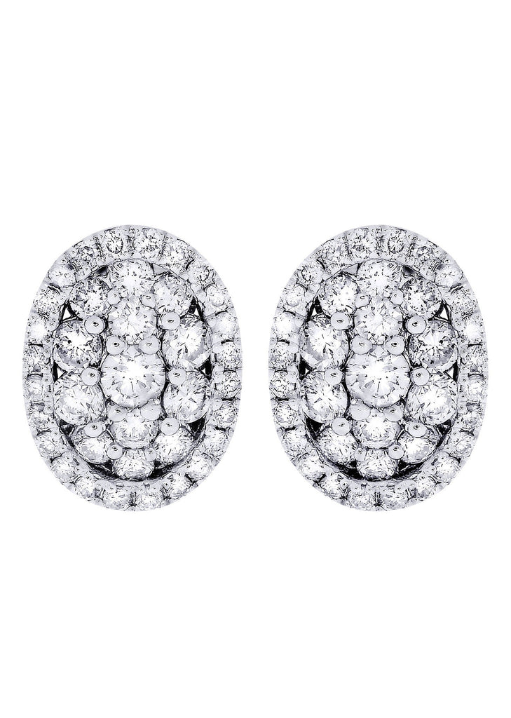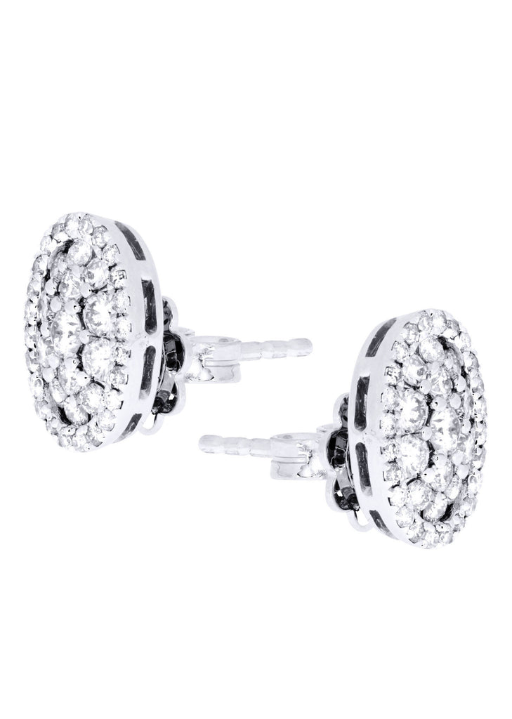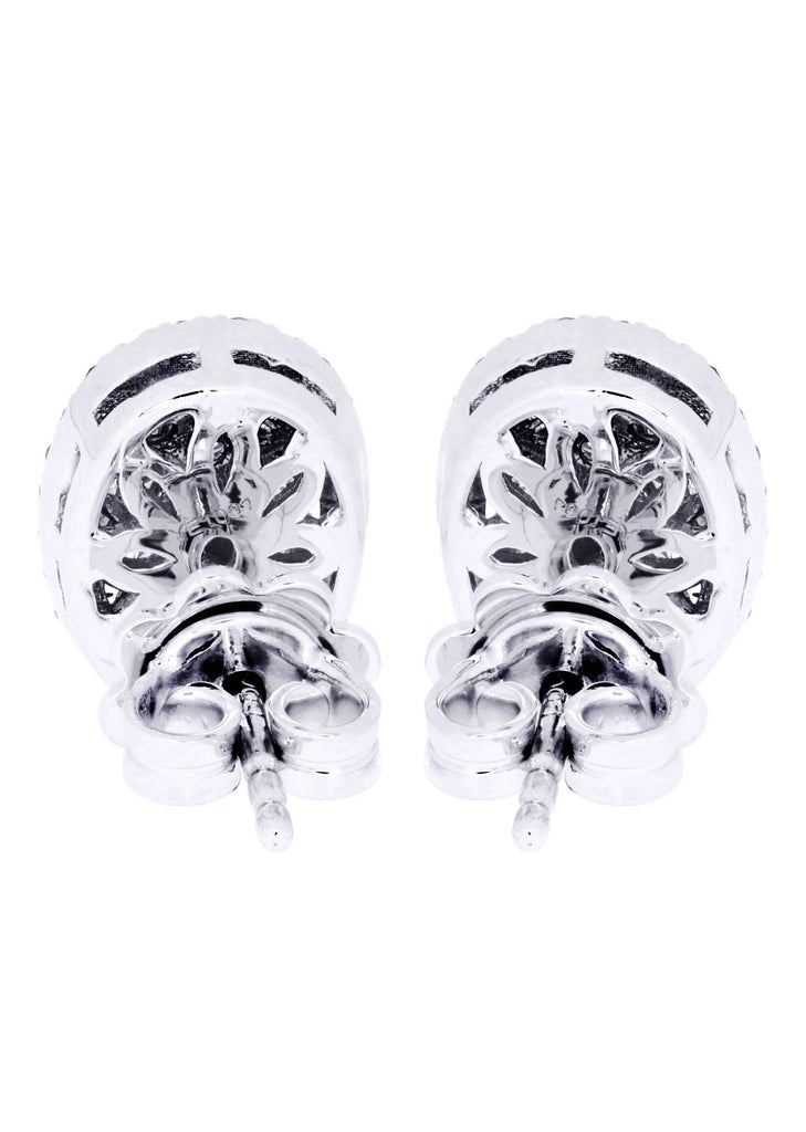 Stud Diamond Earrings Illusion Set In 14K White Gold With Approximately 0.99 Carats Of Diamonds. Earrings Come With An Average Length Of 11 Mm And 8 Mm In Width.