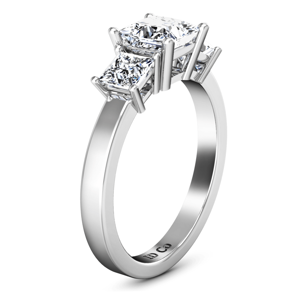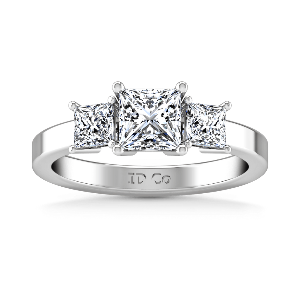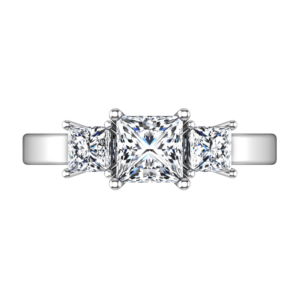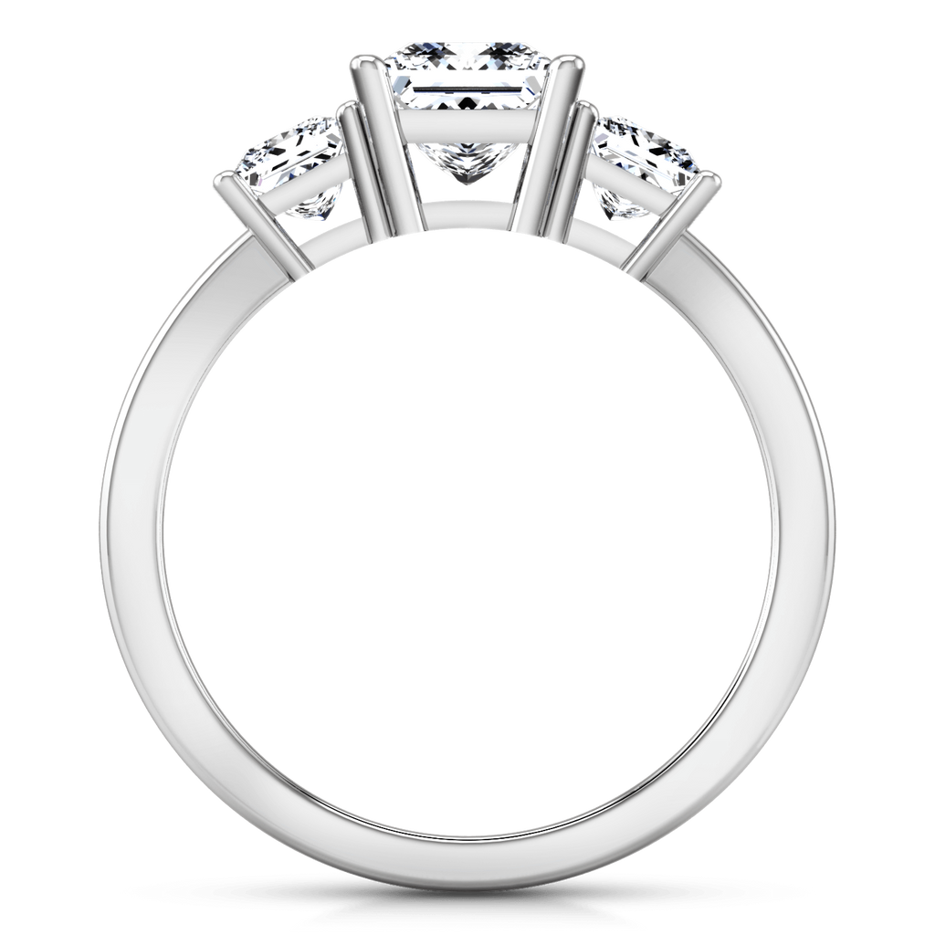 The sparkling center princess cut diamond is flanked by two scintillating princess cut side stones. This is a very resplendent and elegant ring. Featured with 0.34 carats of side diamonds in 14k white gold with an average width of 2.5mm . This ring is fully customizable, so pick your center diamond size, color and clarity and we will custom build it for you.