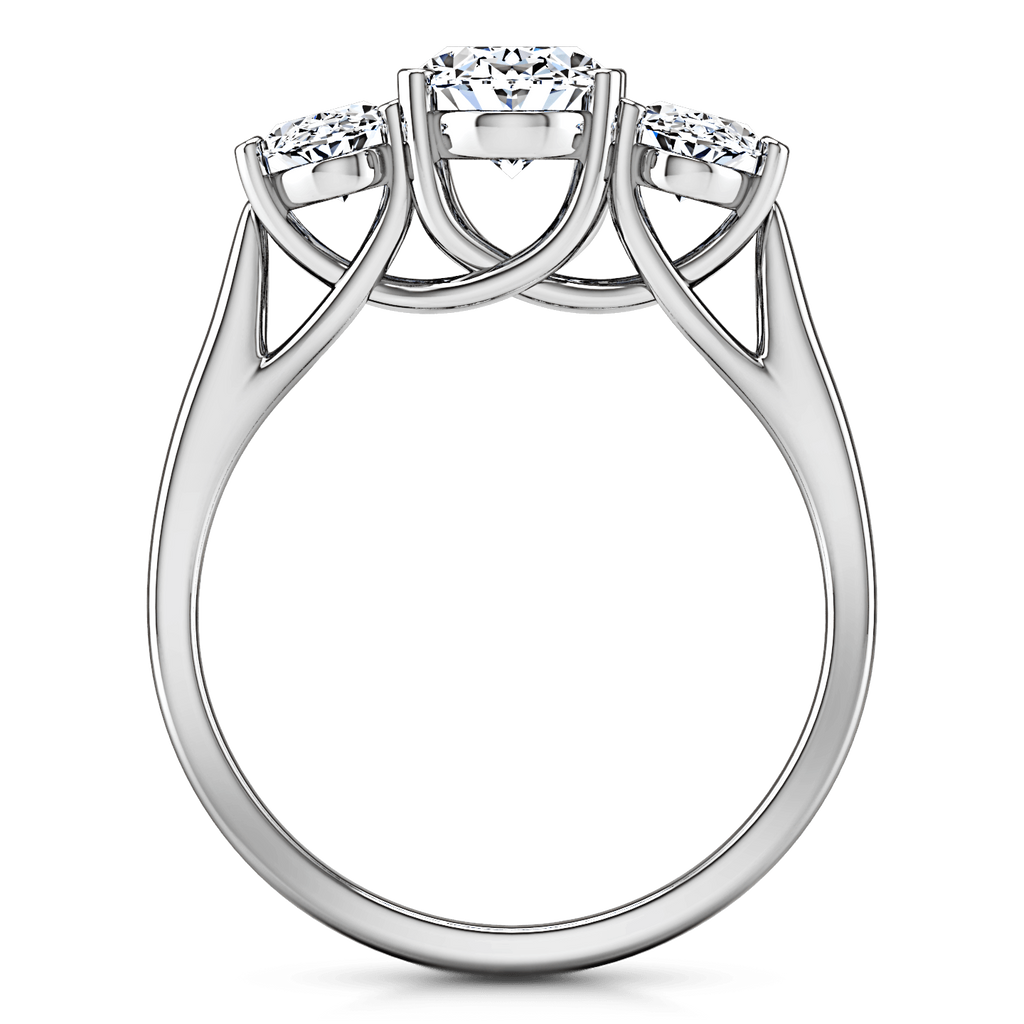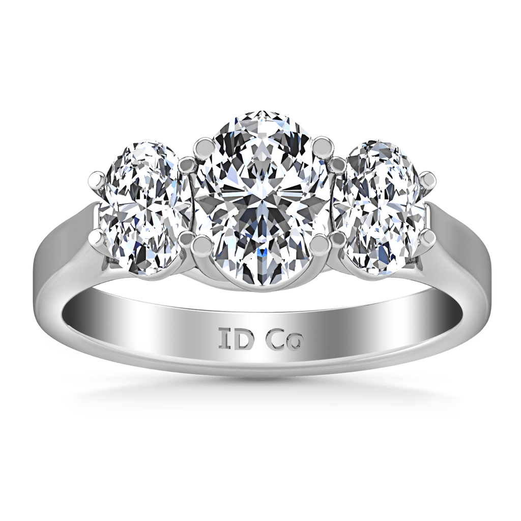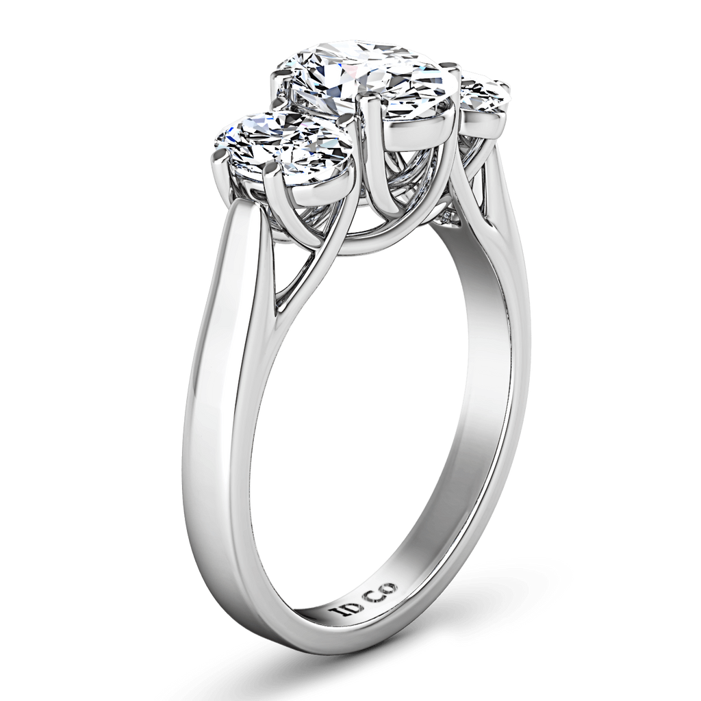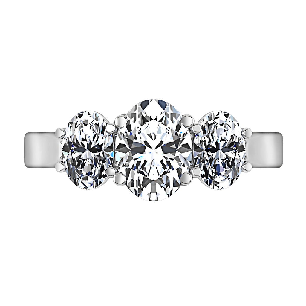 The elegance of your oval center stone is highlighted by two splendid and striking oval side stones. Featured with 0.5 carats of side diamonds in 14k white gold with an average width of 2.5mm . This ring is fully customizable, so pick your center diamond size, color and clarity and we will custom build it for you.