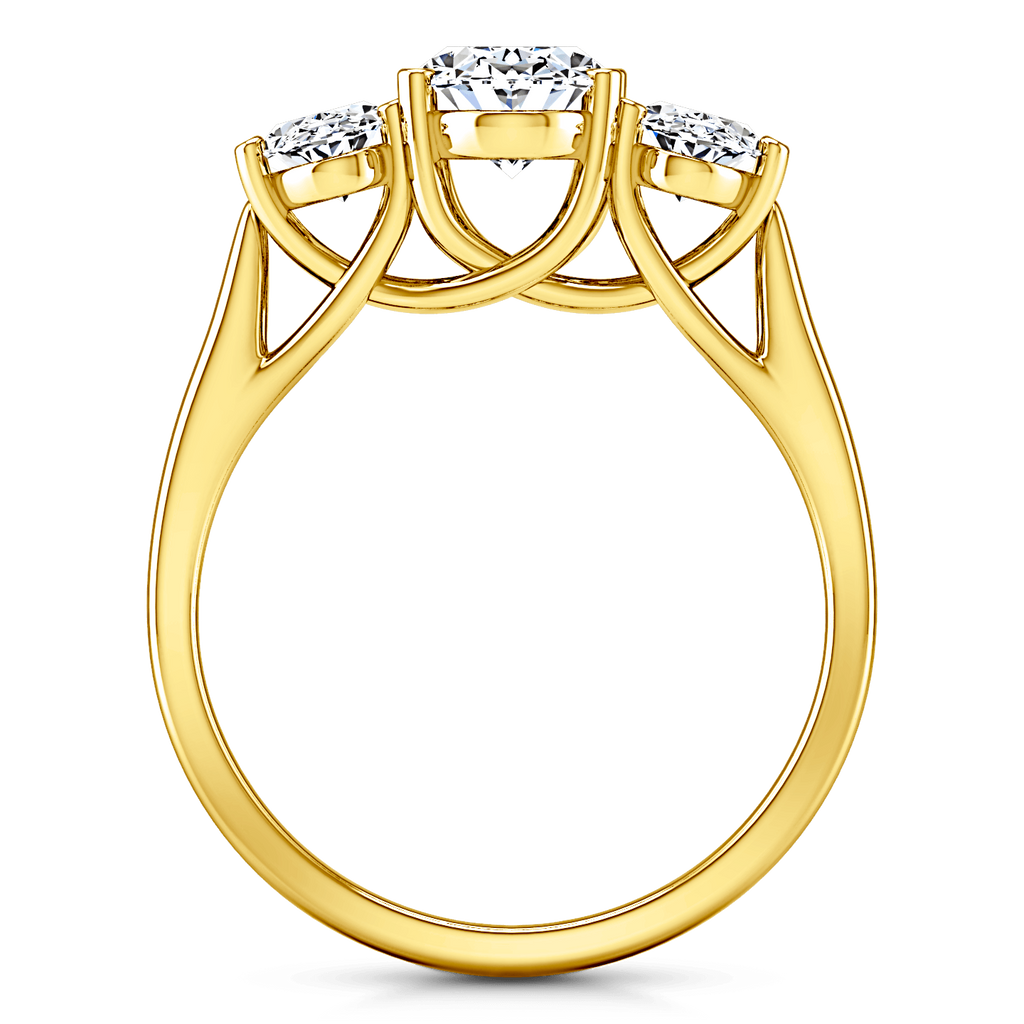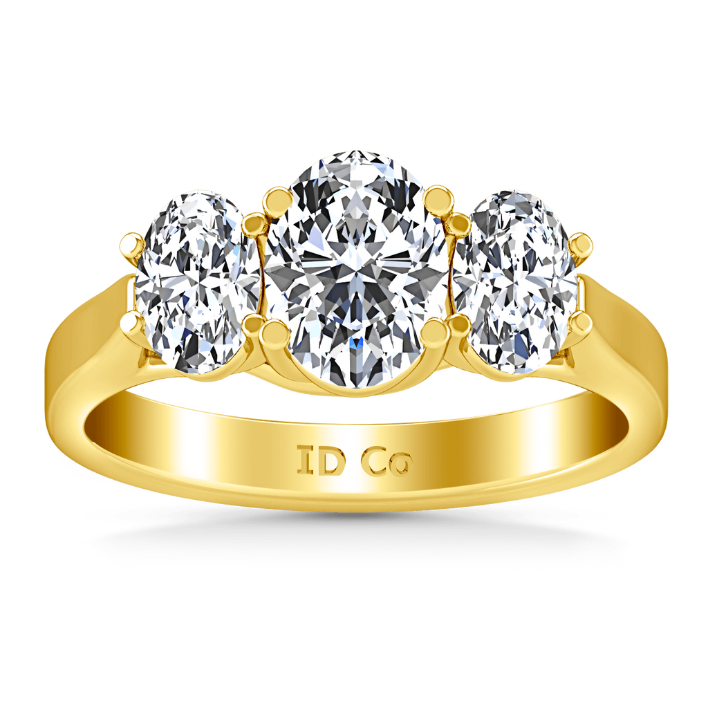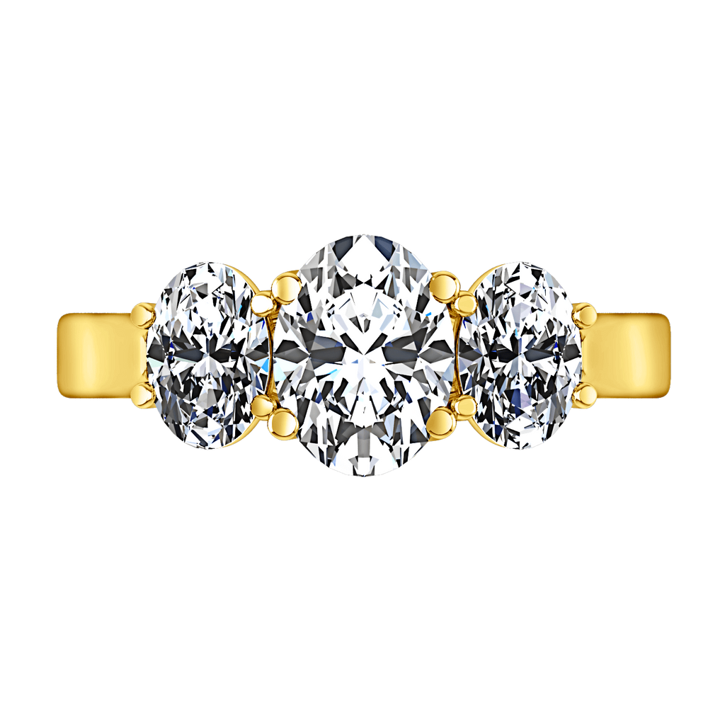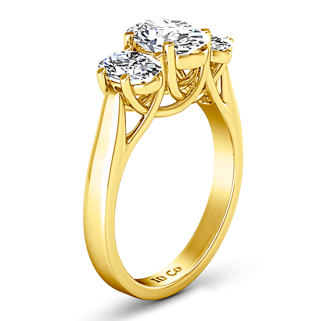 The elegance of your oval center stone is highlighted by two splendid and striking oval side stones. Featured with 0.5 carats of side diamonds in 14k yellow gold with an average width of 2.5mm . This ring is fully customizable, so pick your center diamond size, color and clarity and we will custom build it for you.