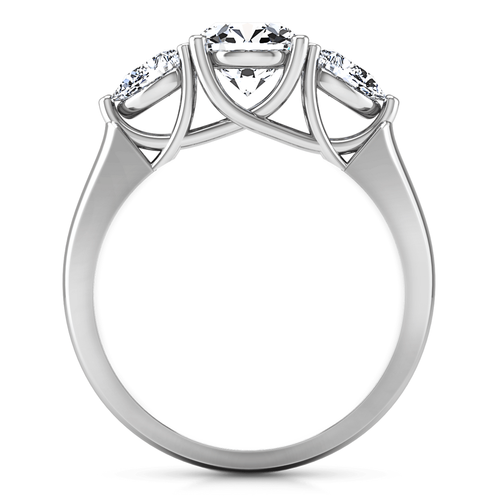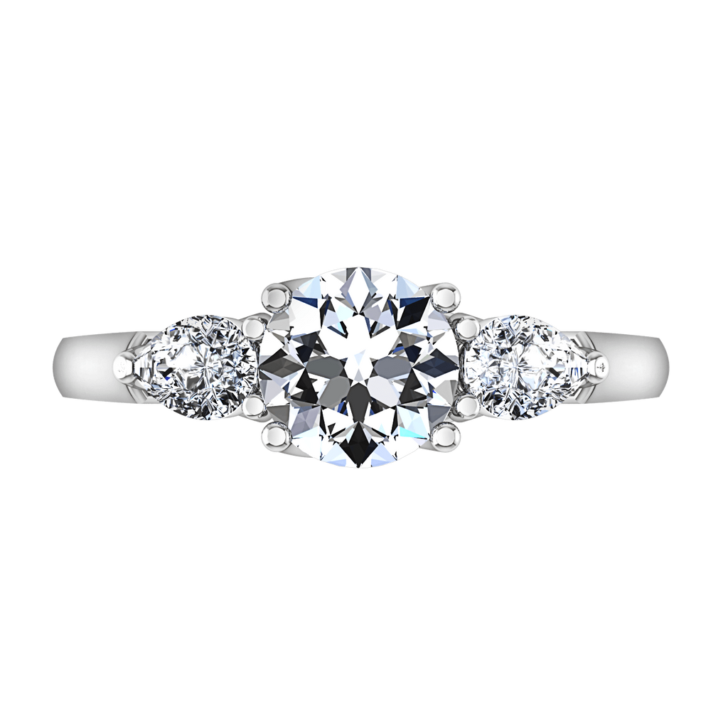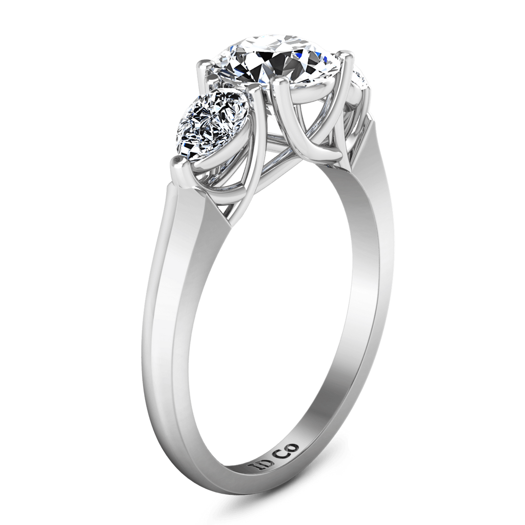 Glamorous and flattering is this mounting that features two ornate pear cut diamonds set beside your glittering center diamond. Featured with 0.403 carats of side diamonds in 14k white gold with an average width of 3mm . This ring is fully customizable, so pick your center diamond size, color and clarity and we will custom build it for you.