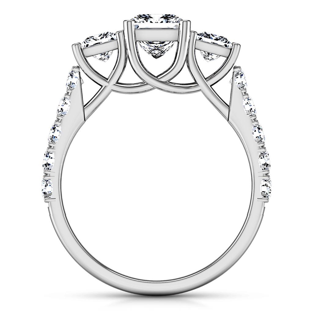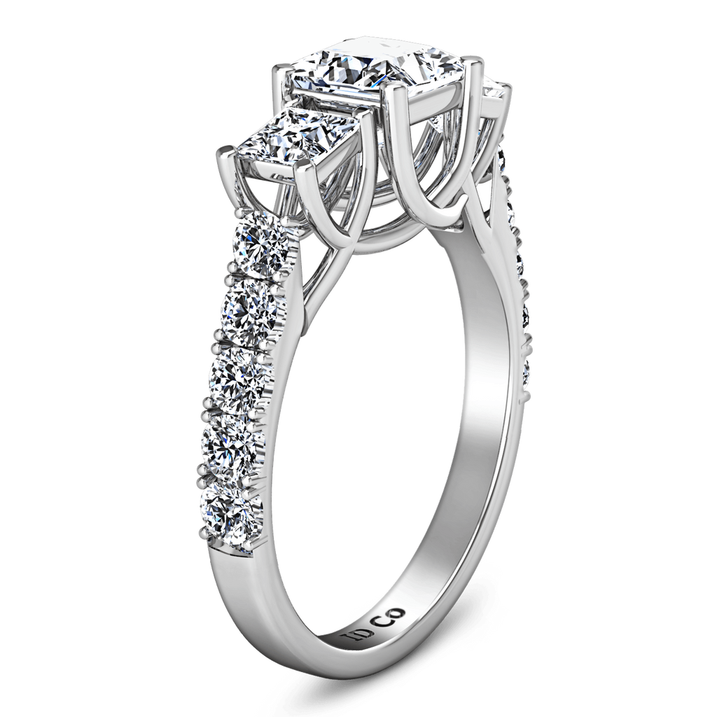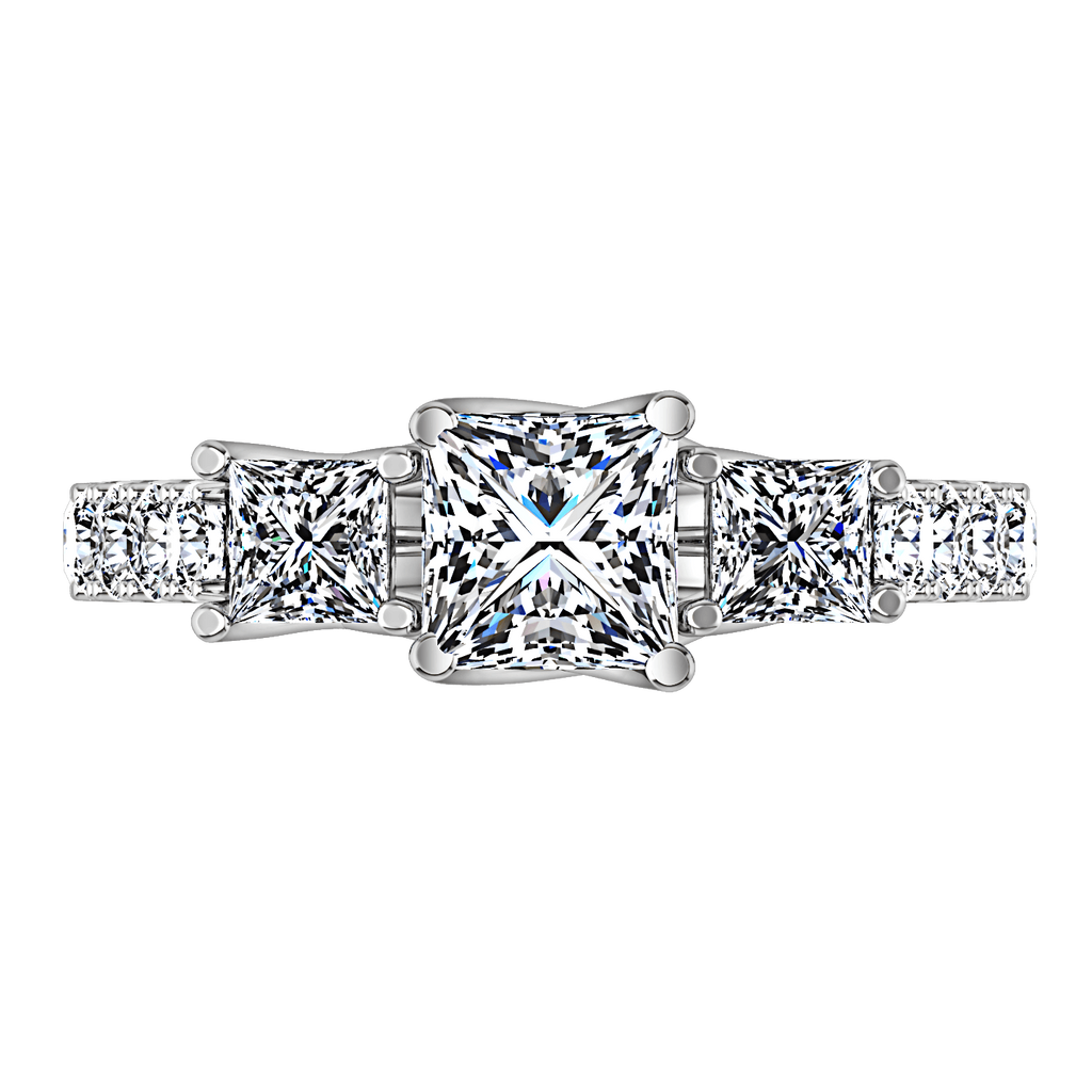 Two dazzling princess cuts highlight your shinning princess cut center stone in this stunning ring that features the alluring lattice style plus accent diamonds on the sides. Featured with 0.49 carats of side diamonds in 14k white gold with an average width of 2.5mm . This ring is fully customizable, so pick your center diamond size, color and clarity and we will custom build it for you.