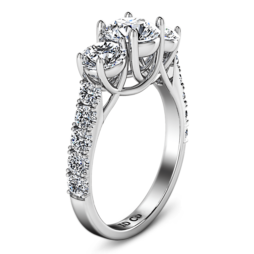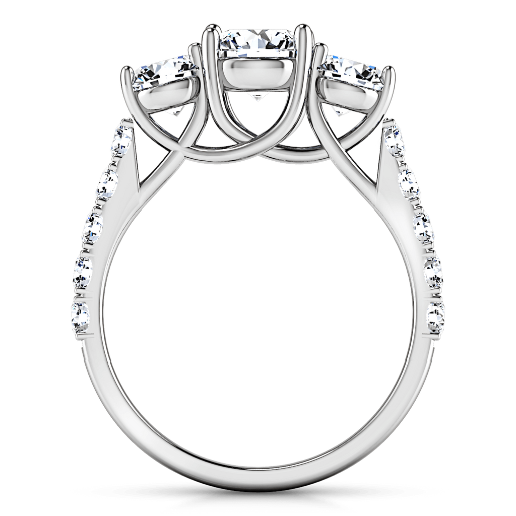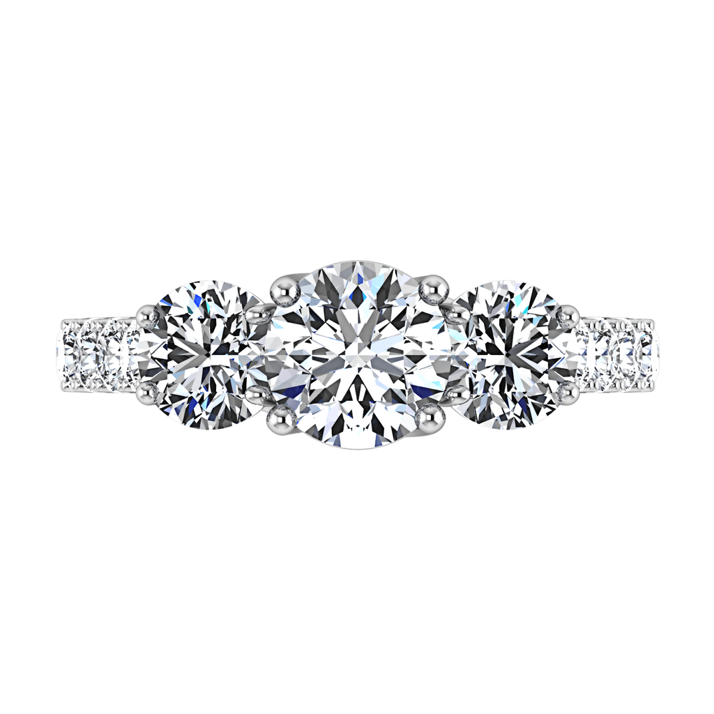 This ring is an alluring spectacle of brilliant diamonds in a lattice style. Two round brilliant cuts highlight your center stone while delicate diamond accents are set on the sides. Featured with 0.4 carats of side diamonds in 14k white gold with an average width of 2.5mm . This ring is fully customizable, so pick your center diamond size, color and clarity and we will custom build it for you.