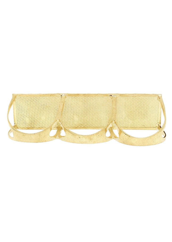 Three Finger 10K Yellow Gold Mens Ring. The Ring Weighs Approximately 10 Grams With An Average Length Of 17 Mm And Average Width Of 60 Mm