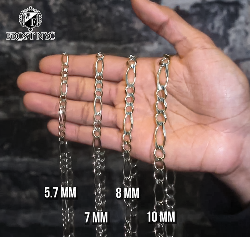 Solid White Figaro Chain | 10K or 14K White Gold. These chains are fully customizable, so you can pick your metal purity, length and width above. Once you selected your metal purity, length and width, you can see the adjusted gram weight below the price.