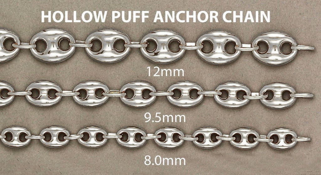 Ladies Semi Solid White Puff Chain | 10K or 14K White Gold. These chains are fully customizable, so you can pick your metal purity, length and width above. Once you selected your metal purity, length and width, you can see the adjusted gram weight above the price.