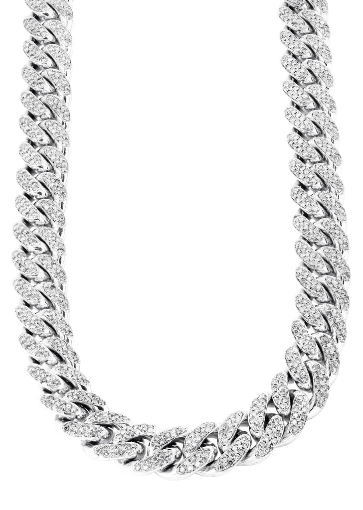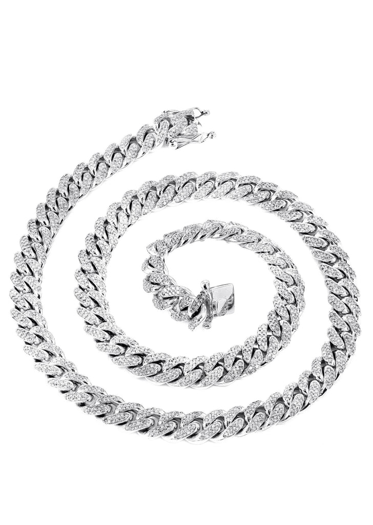 Ladies Iced Out Diamond Miami Cuban Link Chain | 10K & 14K White Gold. This chain is fully customizable, so you can pick your length, width & Karat above. Once you selected your options, you can see the adjusted gram weight above the price. This chain comes in VS Clarity and G/H Color Quality Diamonds.
