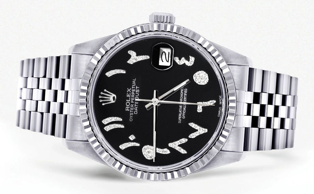 Womens Rolex Datejust Watch 16200 | Fluted Bezel | 36Mm | Black Arabic Dial | Fluted Bezel | Jubilee Band