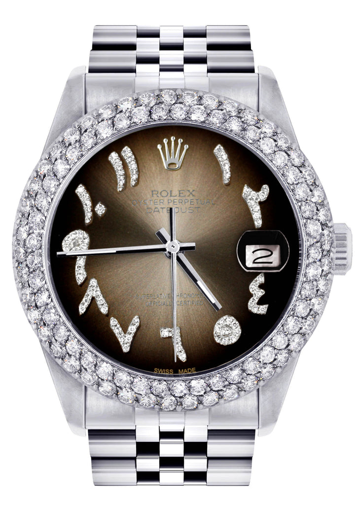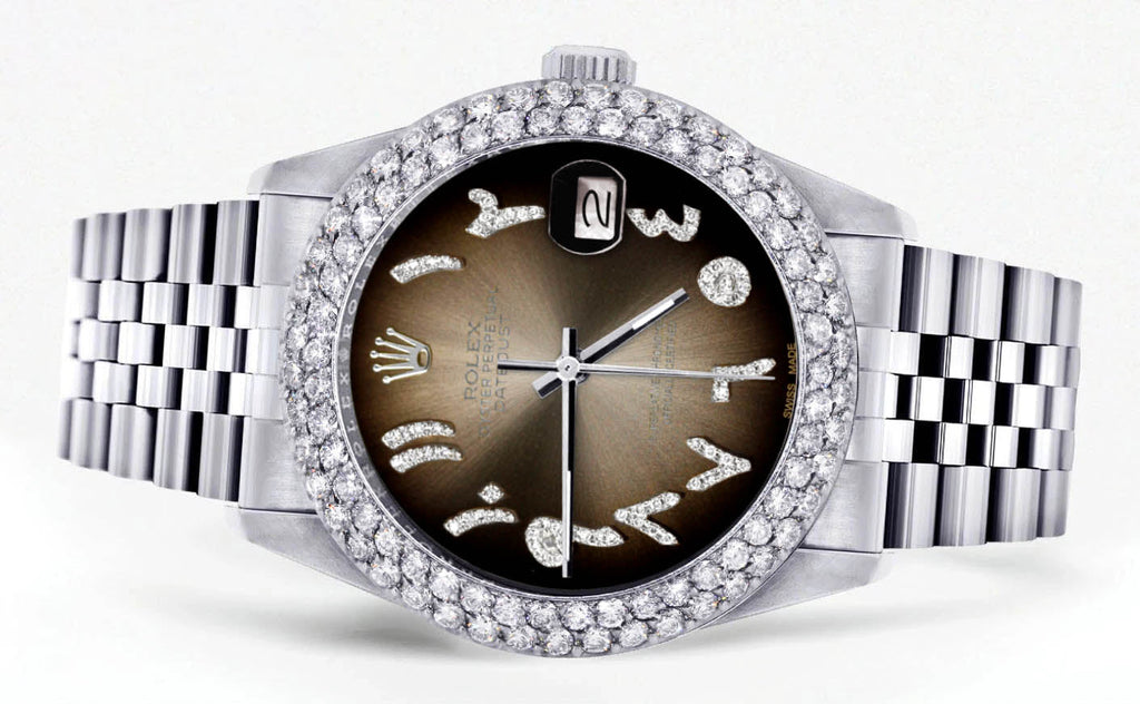 Womens Rolex Datejust Watch 16200 | 36Mm | Brown Arabic Diamond Dial | Two Row 4.25 Carat Bezel | Jubilee Band