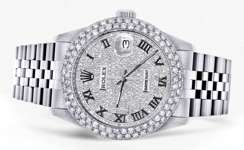 Womens Rolex Datejust Watch 16200 | 36Mm | Full Diamond Roman Numeral Dial | Two Row 4.25 Carat Bezel | Jubilee Band