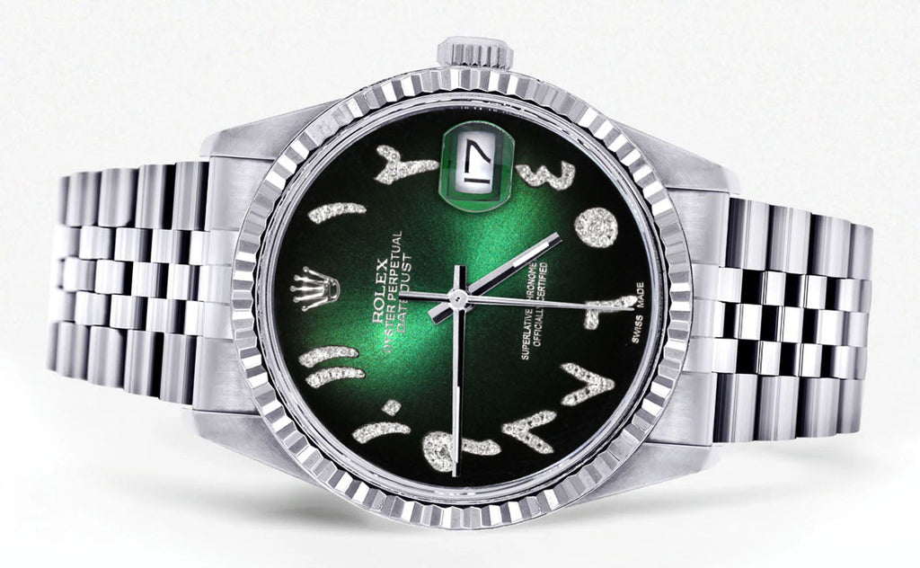 Womens Rolex Datejust Watch 16200 | Fluted Bezel | 36Mm | Green Black Arabic Dial | Fluted Bezel | Jubilee Band