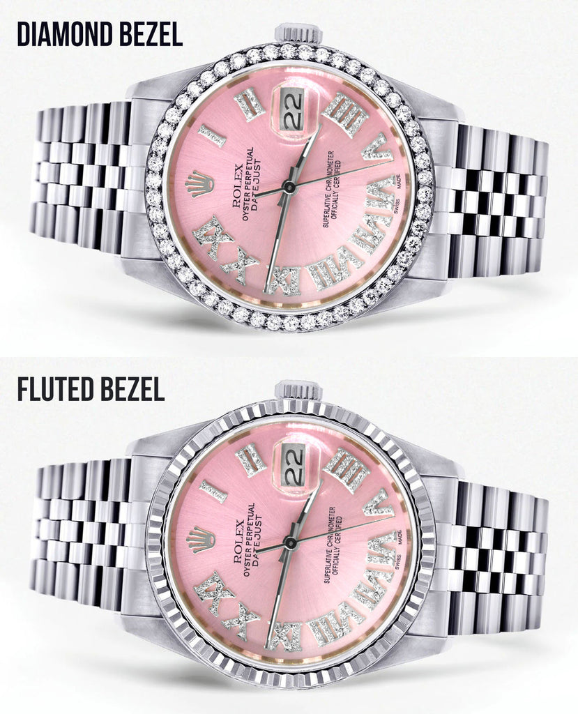 Rolex Datejust 36MM with a Jubilee Band. You can customize the bezel type between Gold Fluted Bezel or Diamond Bezel ranging from 1.00-4.00 carat. Below are more details of the watch.