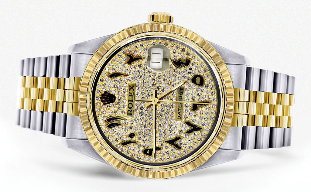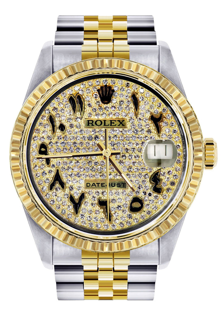 Womens Rolex Datejust Watch | 16233 | 36Mm | Diamond Gold Arabic Numeral | Fluted Bezel | Jubilee Band