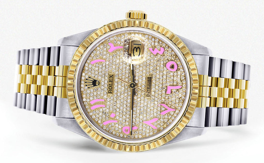 Womens Rolex Datejust Watch 16233 Two Tone | 36Mm | Diamond Pink Arabic Numeral | Fluted Bezel | Jubilee Band